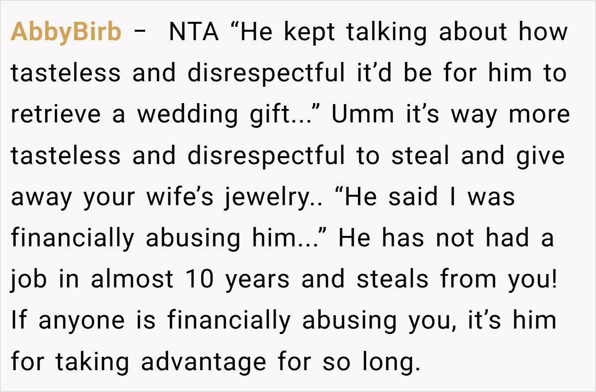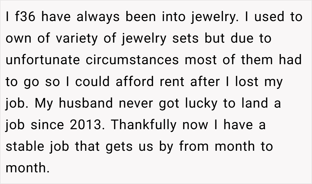 This incident also underscores the necessity for honest communication in relationships. Rather than quietly enduring behavior that undermines shared values, the wife chose to act decisively. While the husband’s arguments about financial dependency and familial harmony might seem compelling on the surface, they mask a broader issue: an unwillingness to take responsibility for one’s actions. By imposing a non-negotiable deadline for the return of her jewelry, she not only reclaims what is rightfully hers but also sends a clear message about the importance of mutual respect in decision-making.