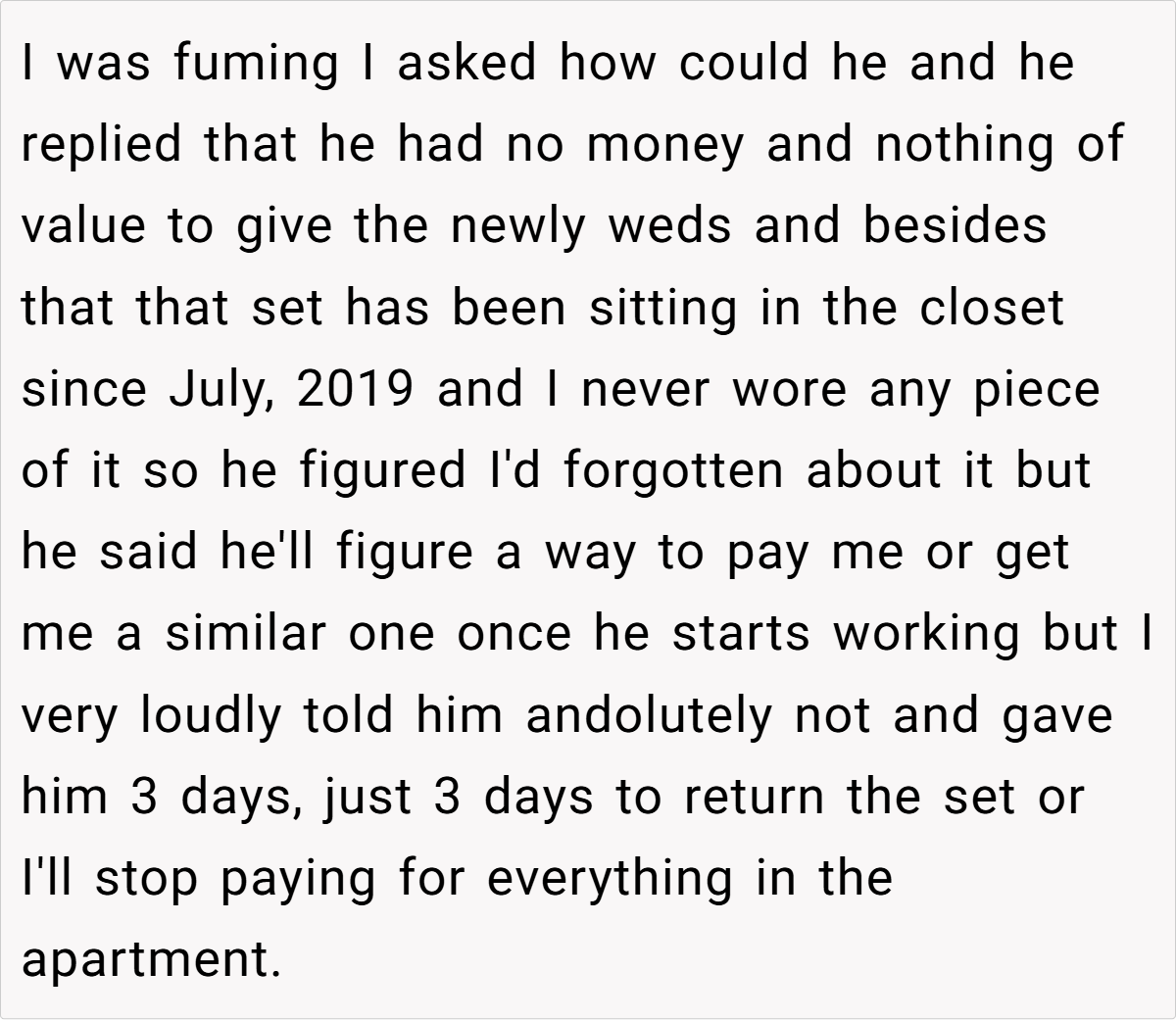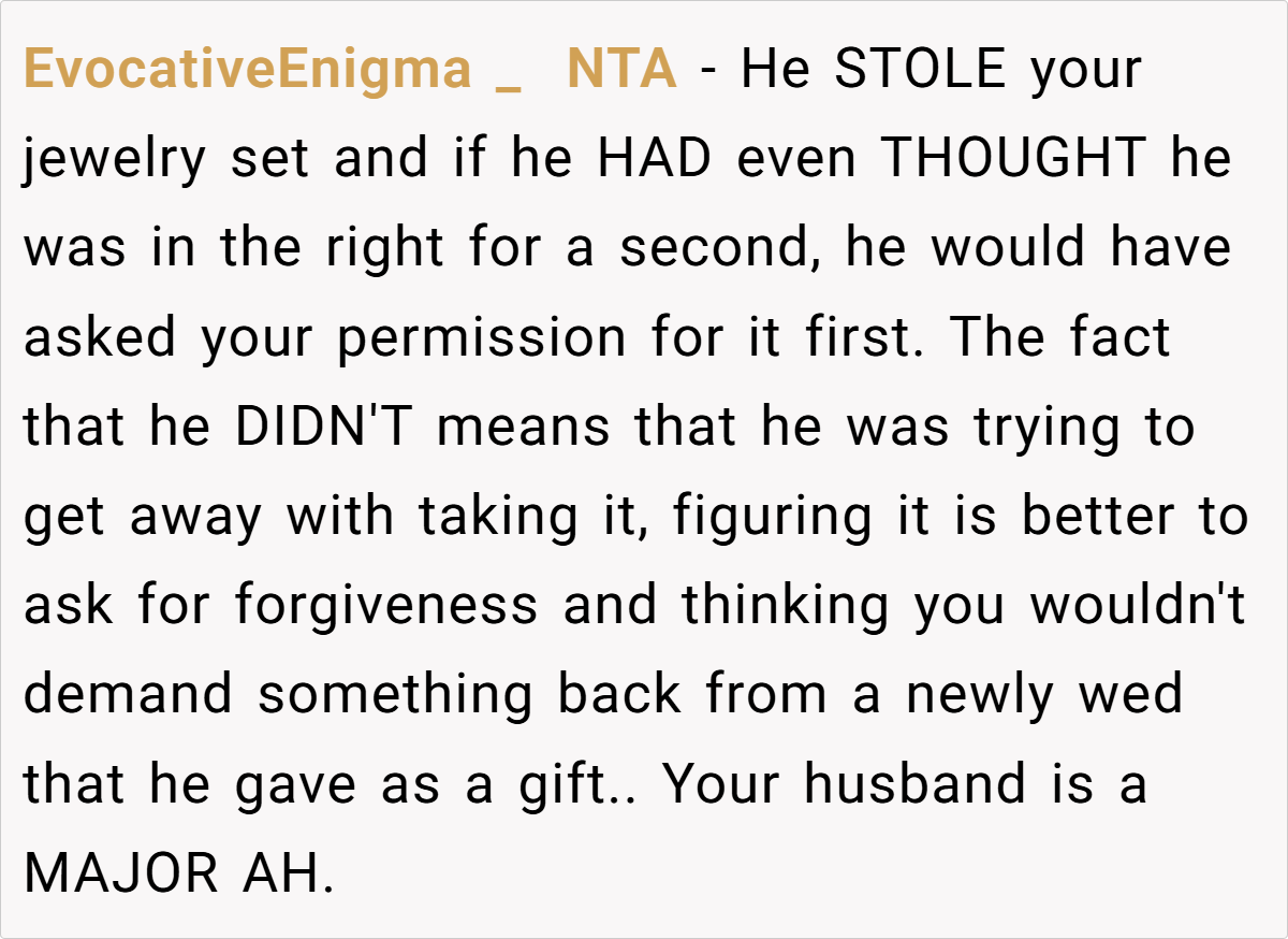 AITA – For giving my husband only 3 days to return my jewelry set that he he gave his brother’s wife as a wedding gift?