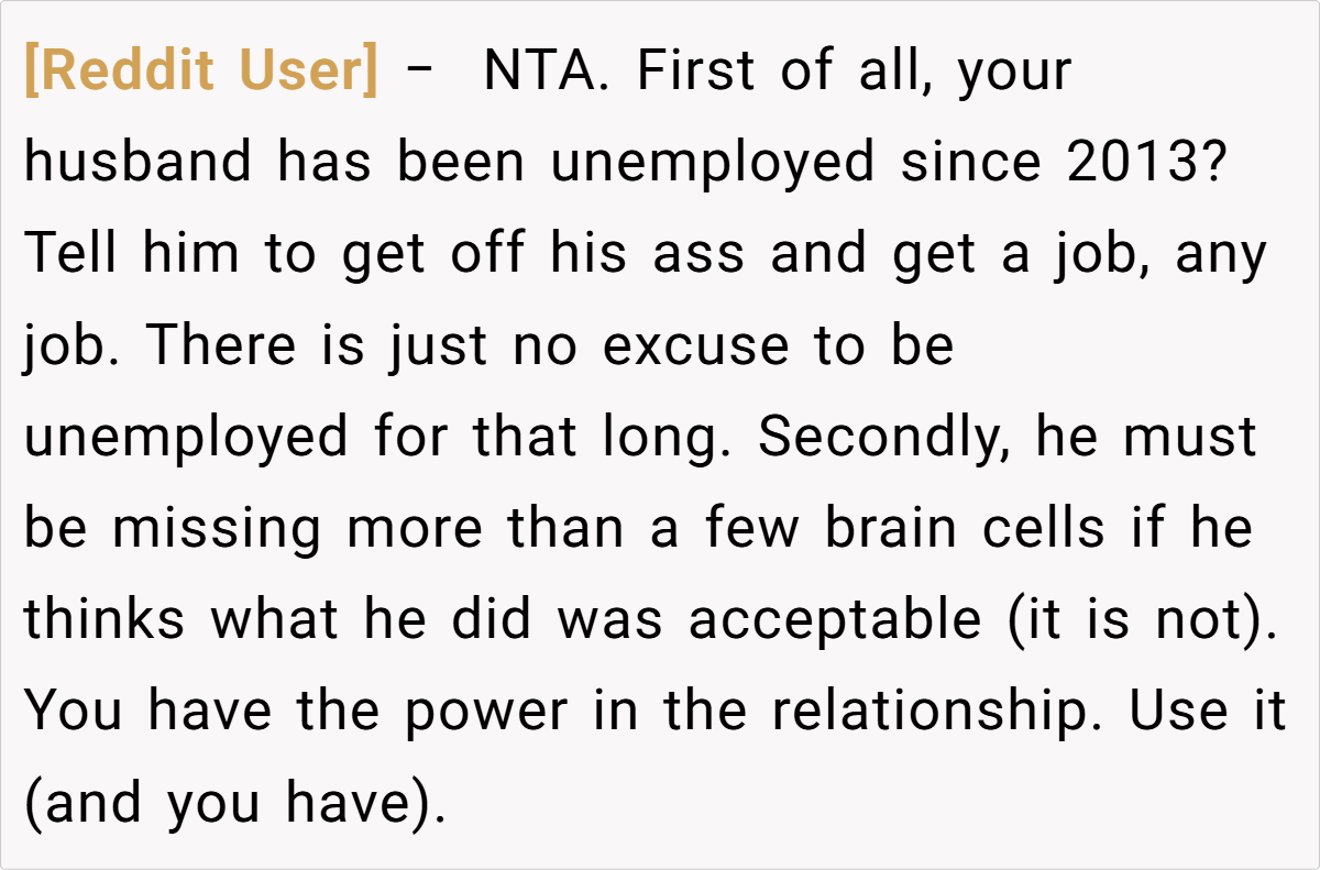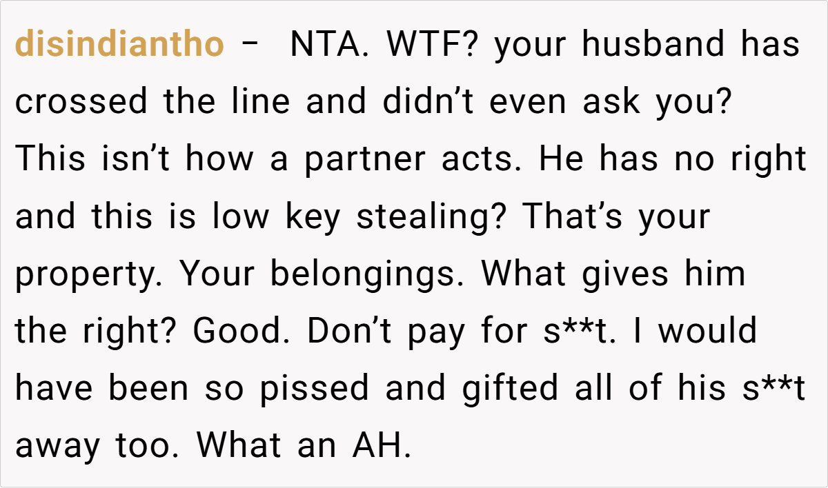 The Reddit community has been unequivocal in its support for the wife’s stance. Many commenters condemn the husband’s unilateral decision as both disrespectful and irresponsible. Some even suggest that such behavior is symptomatic of a larger pattern of financial and emotional abuse within the marriage. Others emphasize that a marriage should be a partnership where decisions about shared property are made together, not dictated by one party without consent.