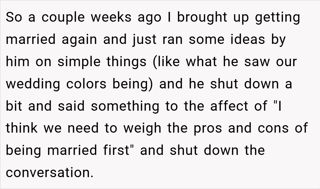 NTA. “I think we need to weigh the pros and cons of being married first.” This is something you think about BEFORE you ask someone to marry you, NOT after! He’s not worth your time.