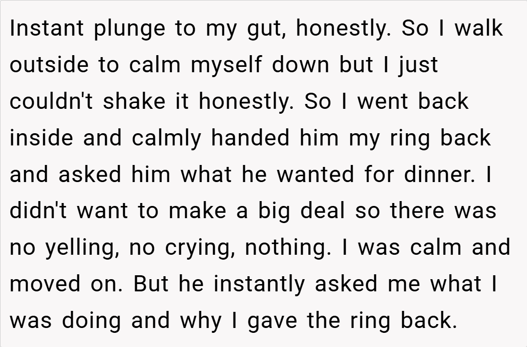 The woman’s decision to return the engagement ring reflects her feelings of hurt and uncertainty regarding her fiancé’s commitment. To move forward, both individuals must engage in honest dialogue to determine the future of their relationship and ensure that their expectations and desires are aligned.