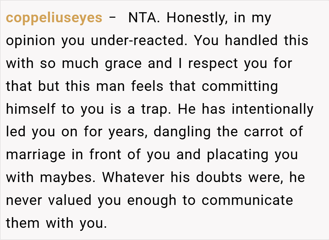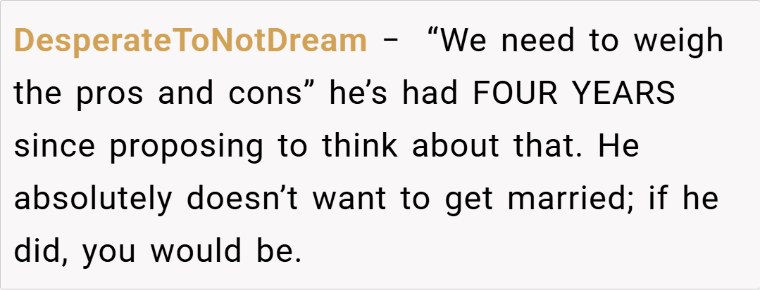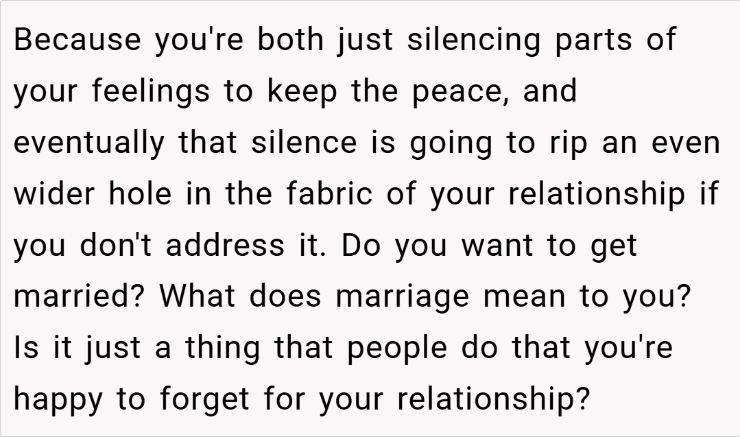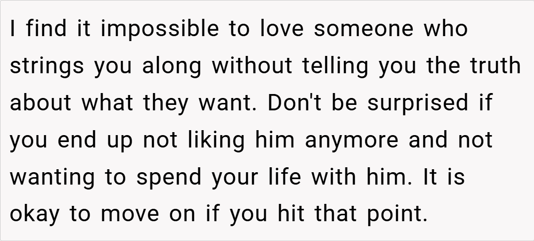 This situation underscores the critical importance of clear communication and mutual understanding in a relationship. When partners have differing views on commitment and future plans, it’s essential to address these discrepancies openly and empathetically.
