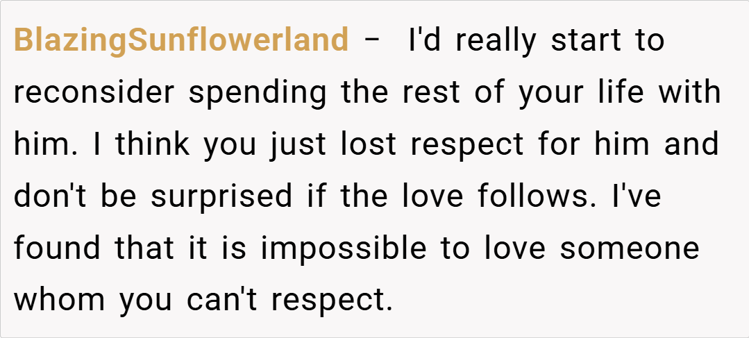 This action prompts a significant reaction from her fiancé, leading her to question whether she overstepped. Is she justified in her response to his comments and hesitation, or is she overreacting to a situation that requires more nuanced understanding?