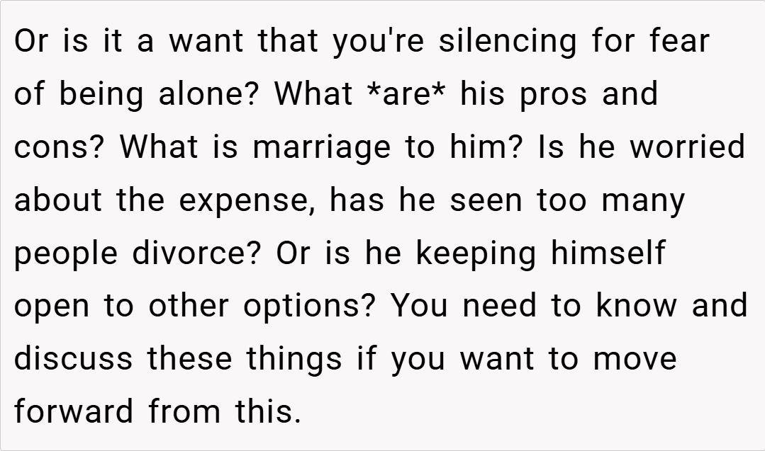 - Open Dialogue: Initiate a candid conversation about each partner’s feelings toward marriage and the future of the relationship. This discussion should be approached with empathy and without judgment.
