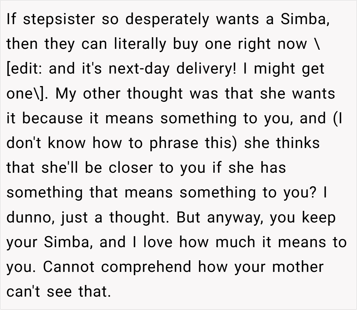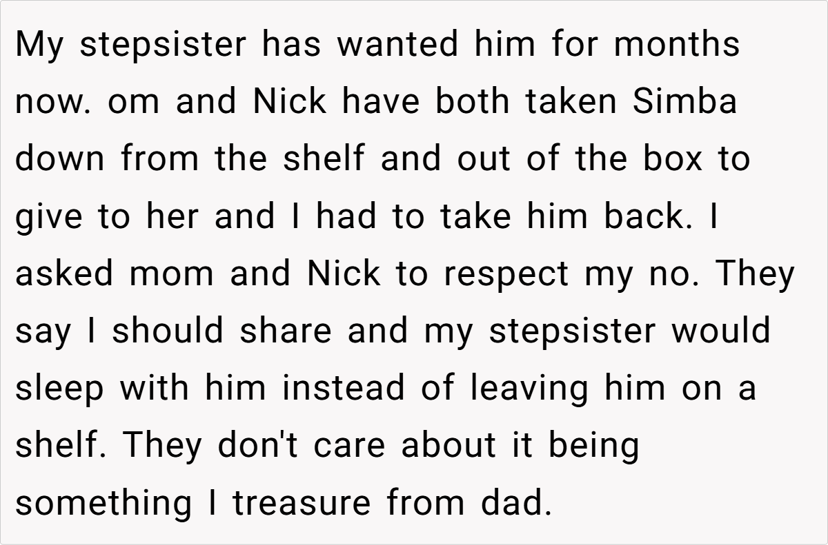 ‘AITA for going directly to my stepsister and telling her she can’t have my Simba stuffy?’