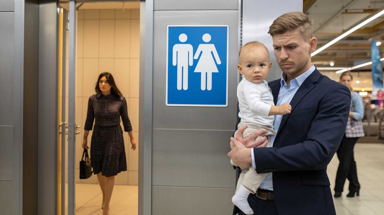 A Redditor shares his experience of navigating a public restroom dilemma while out shopping with his 5-month-old son. After discovering that the men’s restroom lacked a changing table, he entered the ladies’ room to use the changing table there.