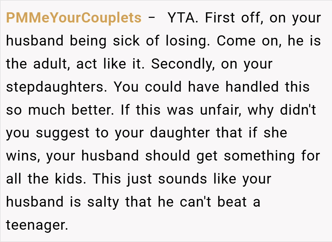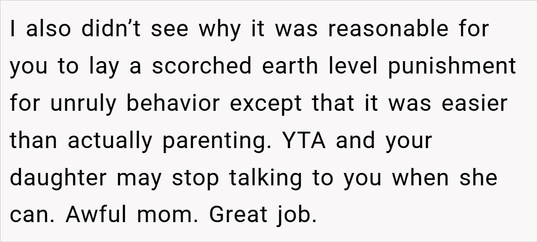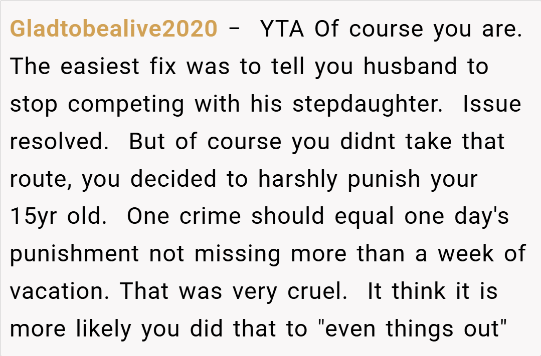The Reddit community has been divided on this issue. Several users argued that the mother’s decision was overly harsh, emphasizing that the competitive environment created by the adults was the real problem.