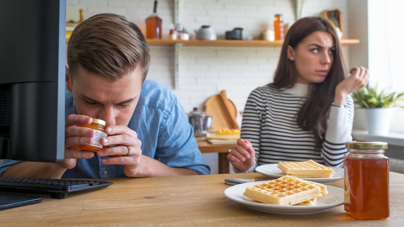 A 31-year-old man has a hidden stash of raw honey, which he loves for his oatmeal, as his partner consumes it rapidly for her waffles. He feels frustrated because while she uses the honey extensively, she contributes nothing to its purchase.