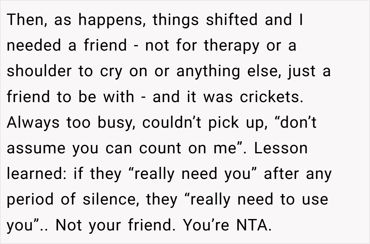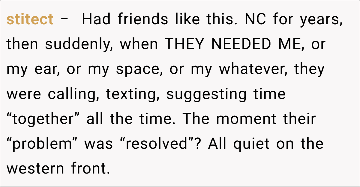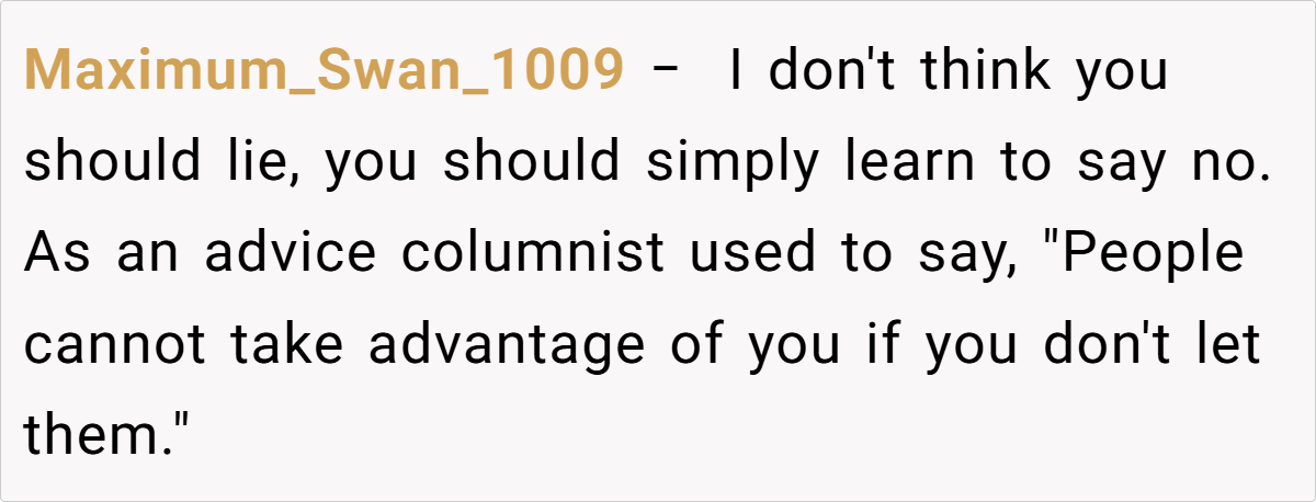 It’s important to remember that a true friend will respect your limits, and if they don’t, it may be time to reconsider the relationship’s dynamics. The advice is simple: “No” is a complete sentence. Over time, small refusals and honest conversations about your needs can pave the way for mutual respect—even if it means stepping back from a friendship that seems more draining than supportive.