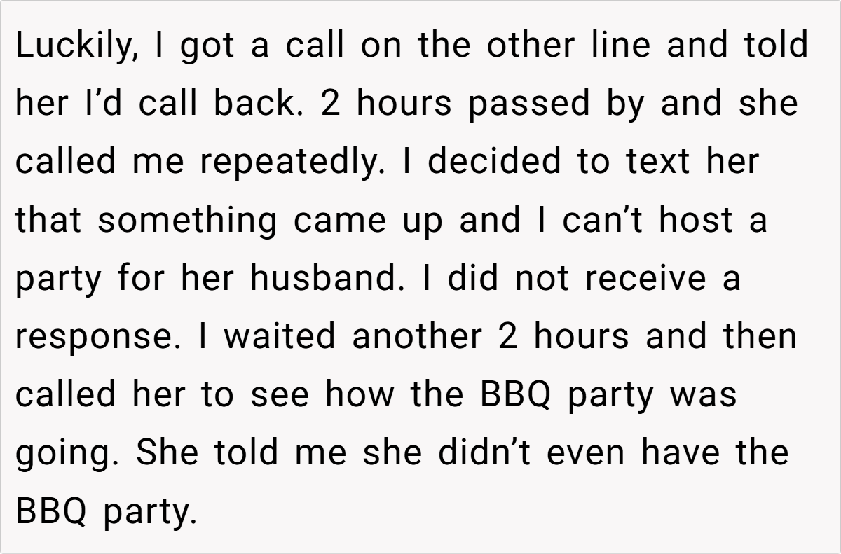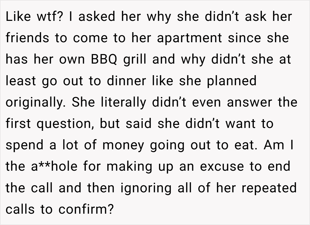 ‘AITA for ignoring my friend’s phone calls after she invited herself, her spouse, her children, and her friends to my home for an impromptu BBQ without my permission?’