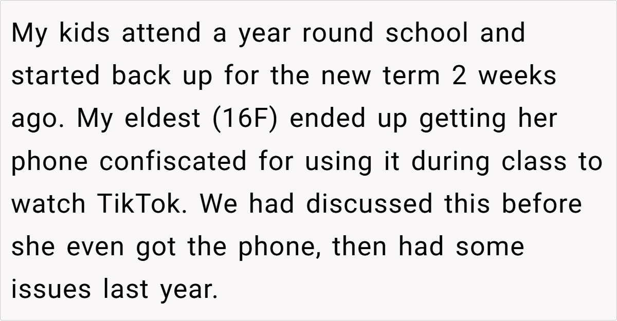 When children misbehave in school, consequences are expected. But what happens when a school’s disciplinary policy oversteps into parental authority? One Redditor shared a story about their 16-year-old daughter, who had her phone confiscated for watching TikTok in class.