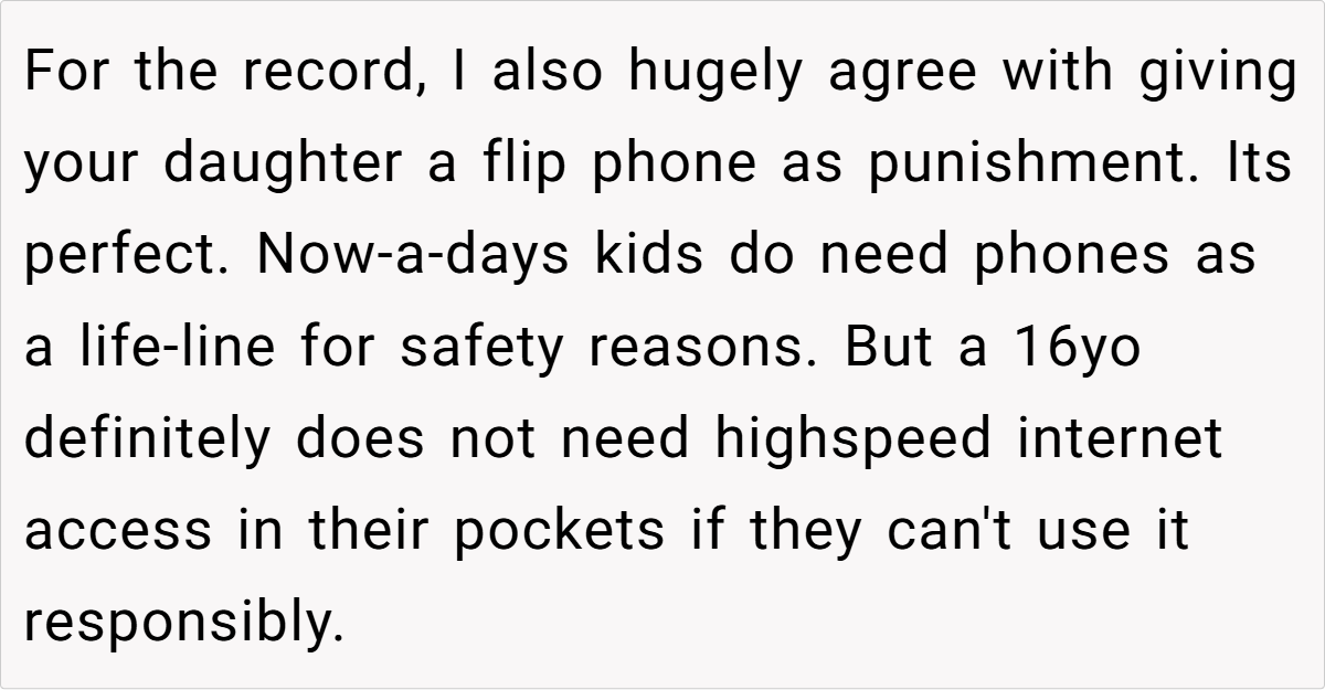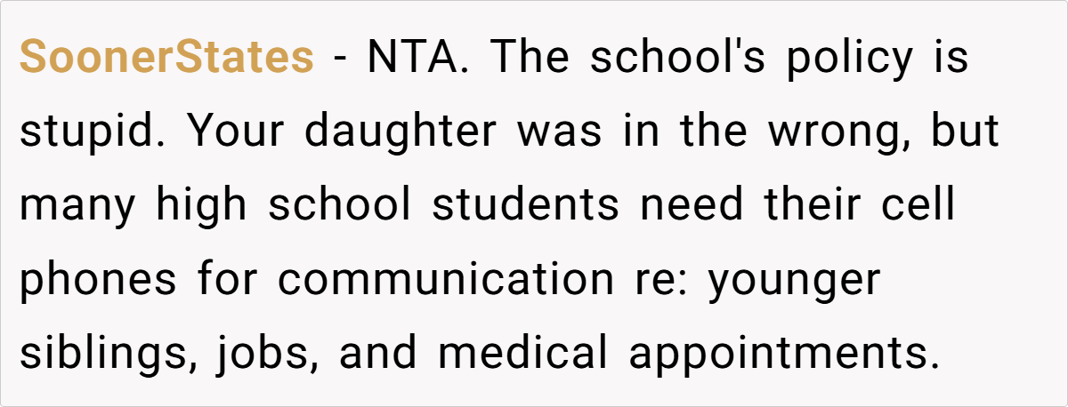 Most agree that OP was justified in retrieving their daughter’s phone. While students must respect classroom rules, schools must also respect parental rights and legal ownership of property. A more balanced approach—such as requiring students to surrender phones during class but returning them at the end of the day—might prevent future conflicts.