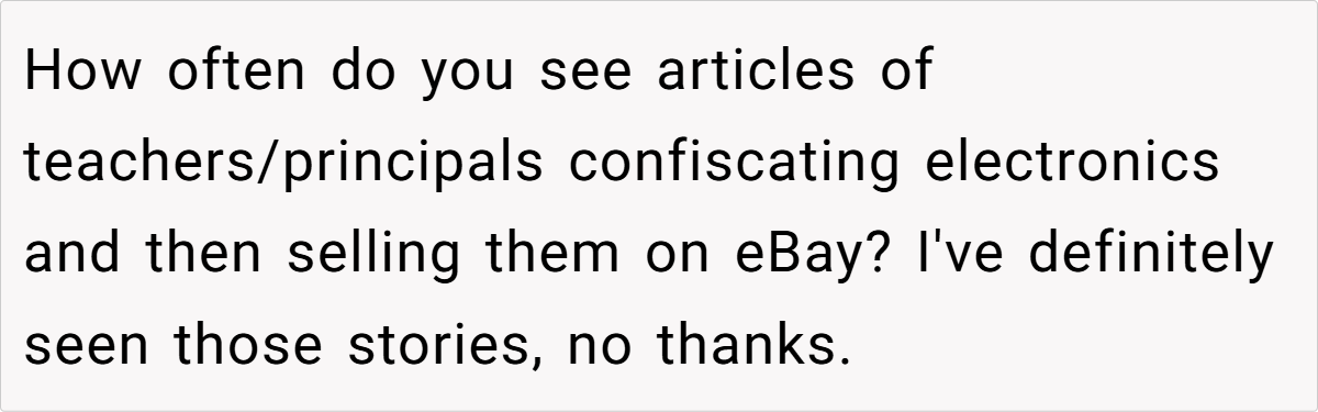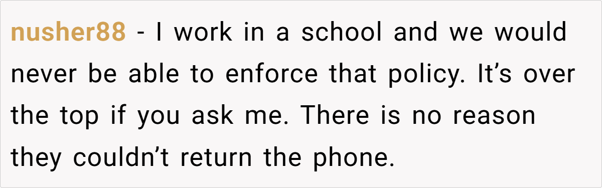 Dr. Jason F. Boggs, an education policy expert, explains, “While schools can implement rules for in-class behavior, they cannot legally retain a student’s personal property beyond school hours without explicit parental consent. Confiscation policies that extend beyond the school day may fall into legally questionable territory, especially when the property belongs to the parent.”