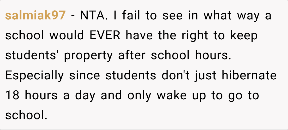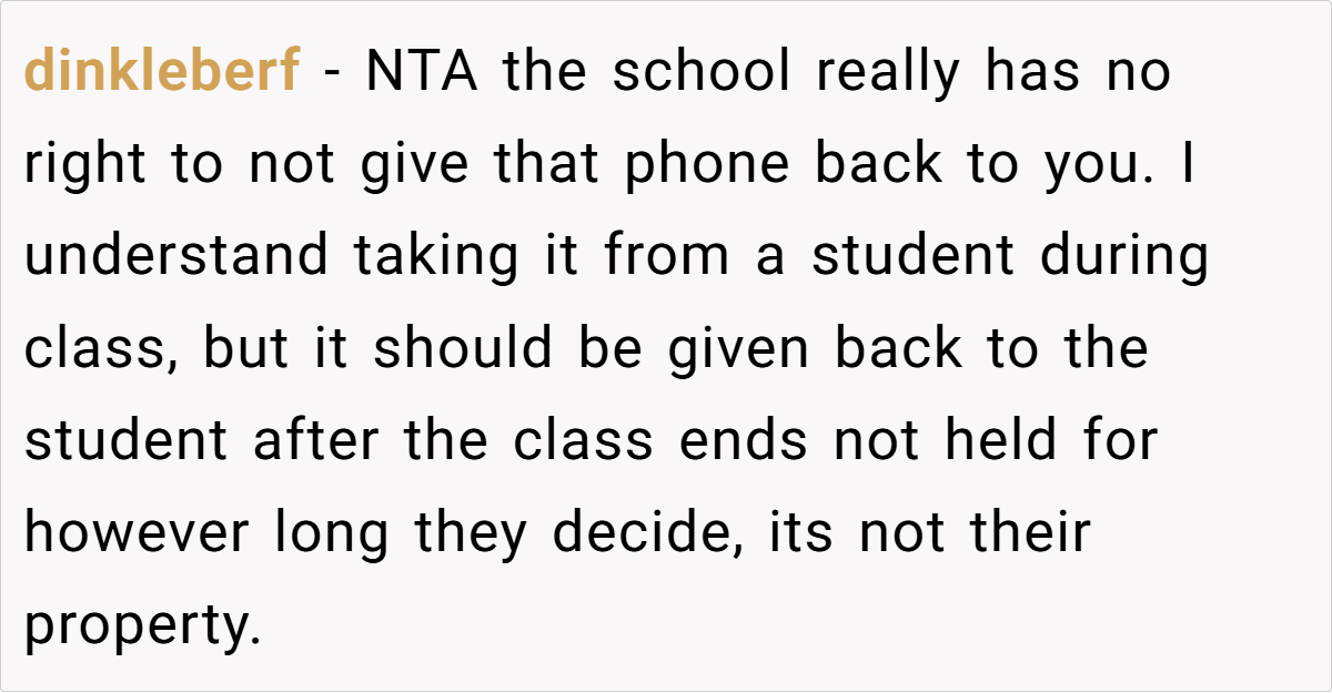 The majority of Redditors sided with OP, arguing that the school overstepped by keeping a personal device beyond school hours. Many pointed out that schools do not have the right to seize personal property indefinitely.