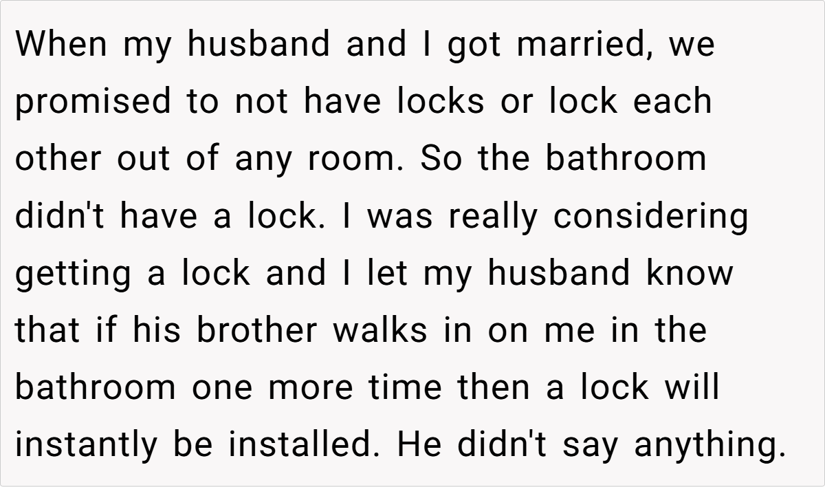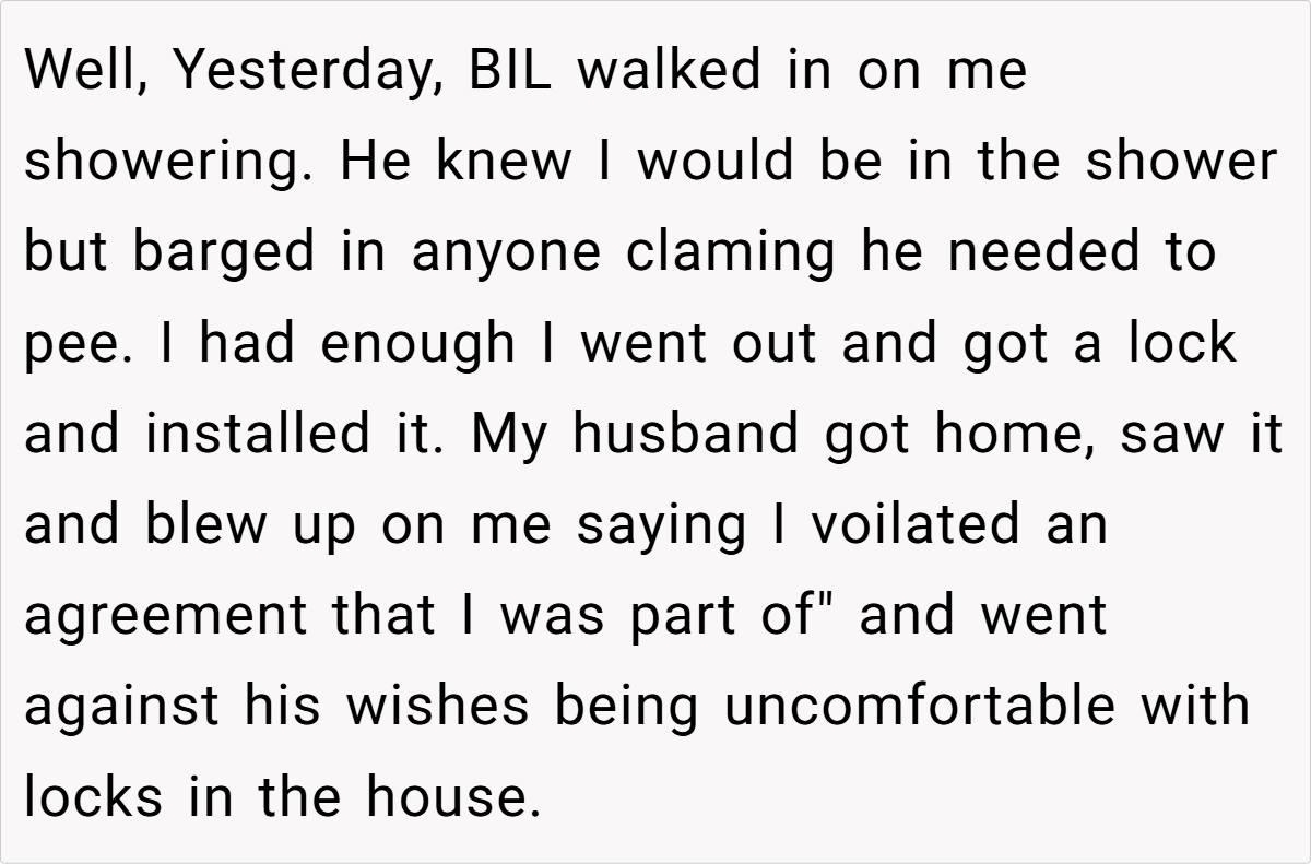 ‘ AITA for installing a lock on the bathroom door after my BIL kept barging in?’