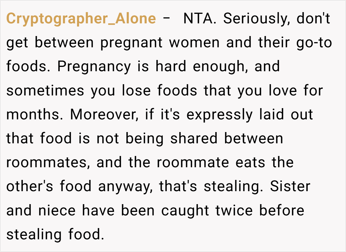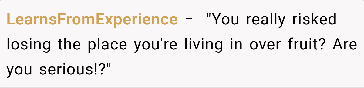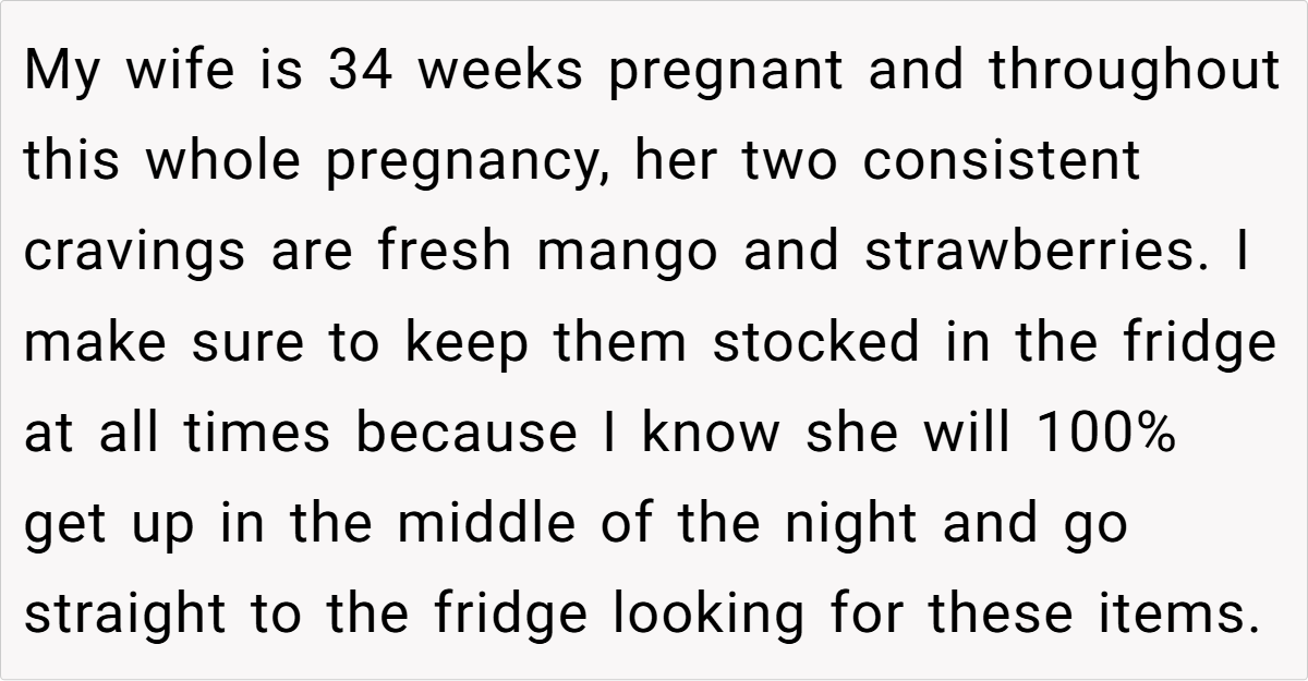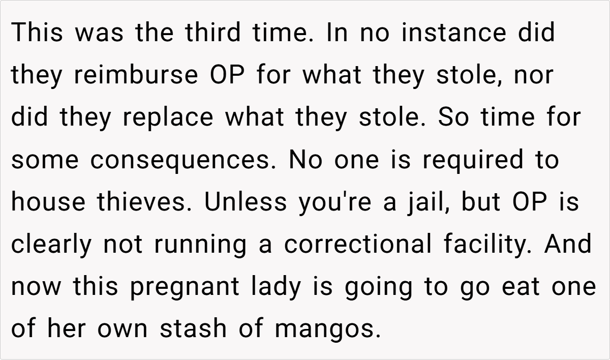 A man kicked his sister and her 12-year-old daughter out of his home after they repeatedly ate the fruit he had stocked for his pregnant wife, despite being warned not to. His wife, 34 weeks pregnant, craved strawberries and mangoes, and their disappearance left her visibly upset.