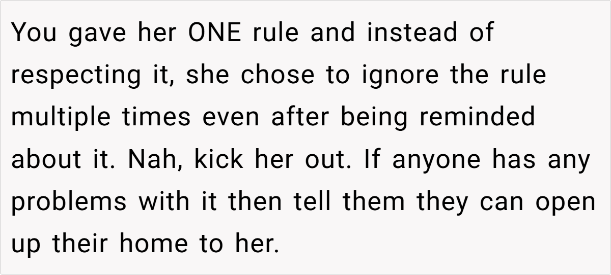 Was kicking them out a fair consequence for repeated disregard, or was it an overreaction in a family crisis? Should respect for boundaries outweigh temporary hardship? Share your thoughts below!