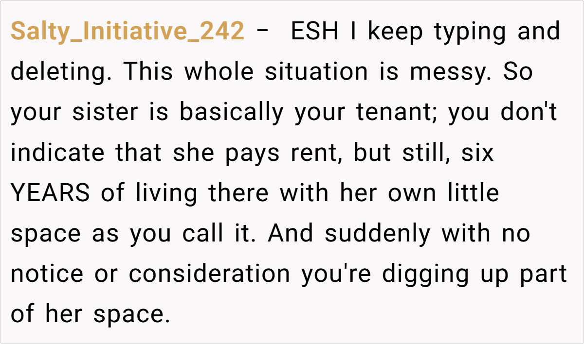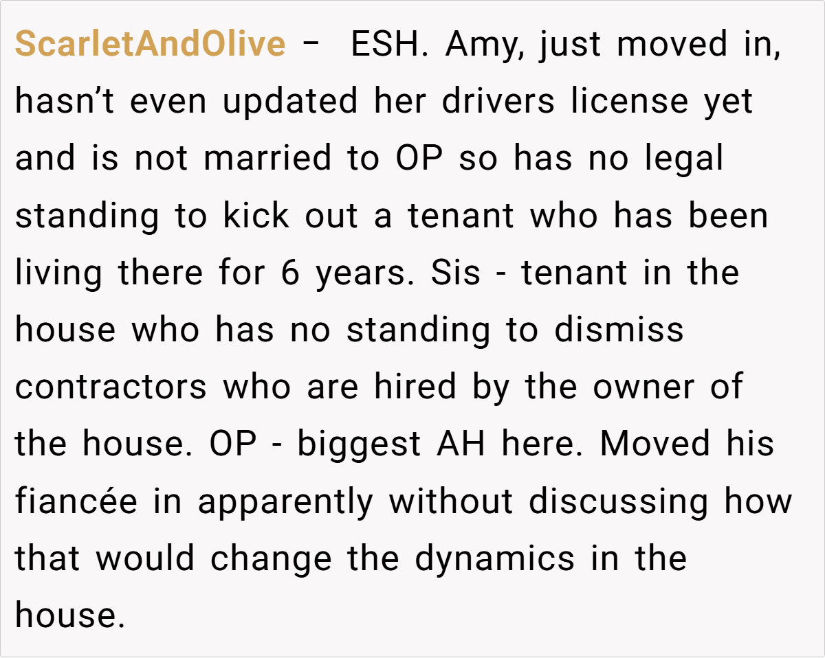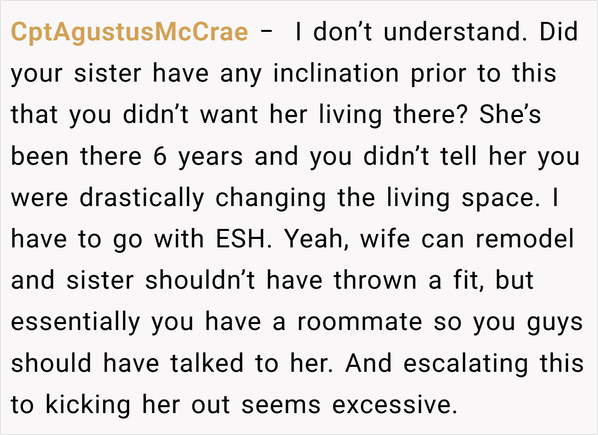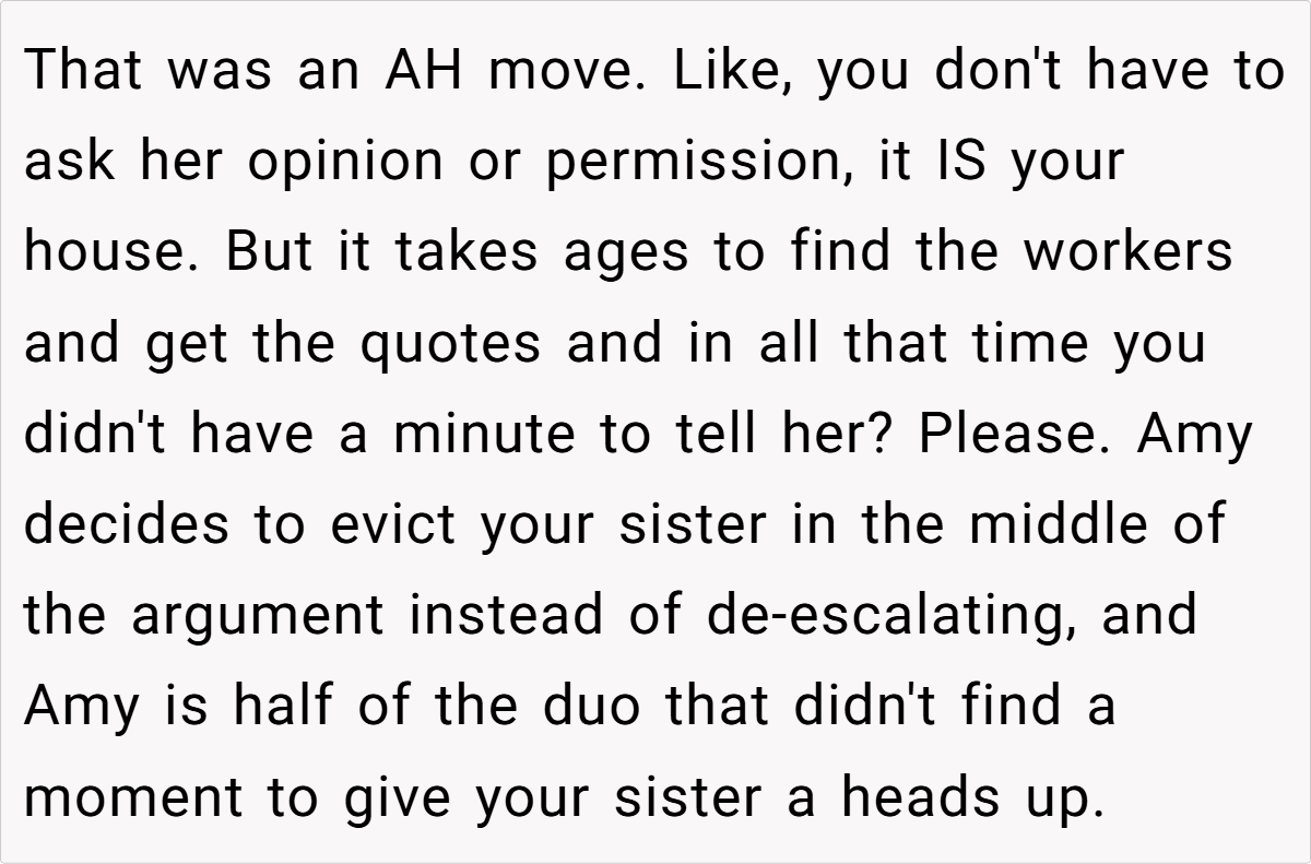 The Reddit community is divided on this issue, with many assigning blame to multiple parties involved. While a significant number of users believe the original poster (OP) is not the asshole (NTA) and that his sister overstepped by interfering with the renovations and not being grateful for his support over the years, others feel that everyone sucks here (ESH).