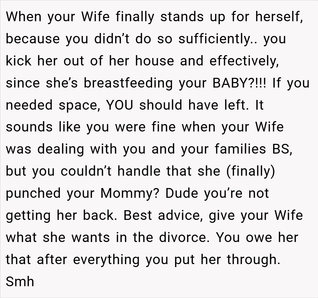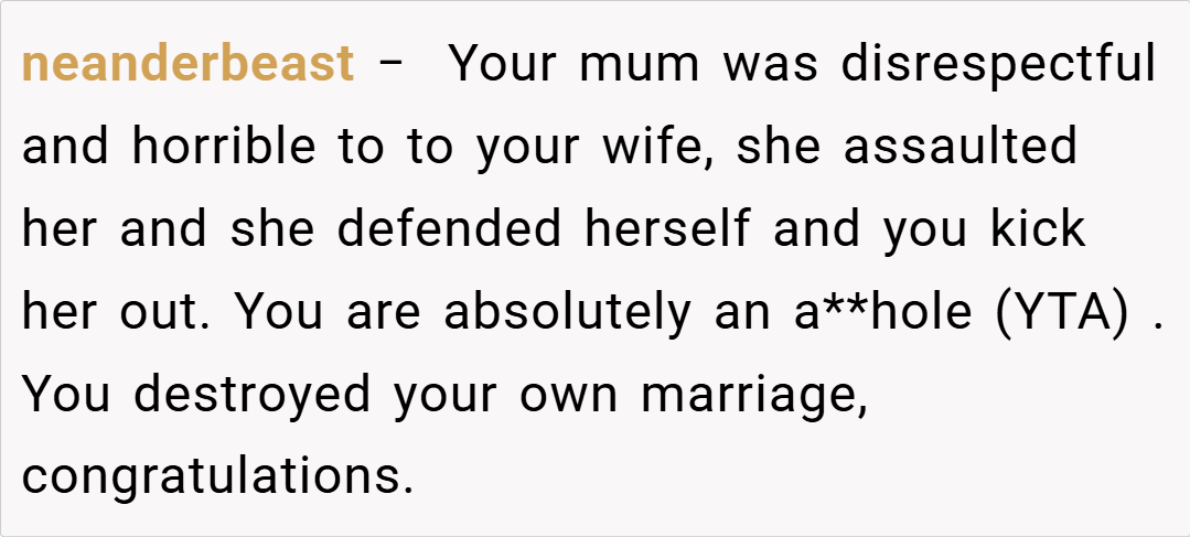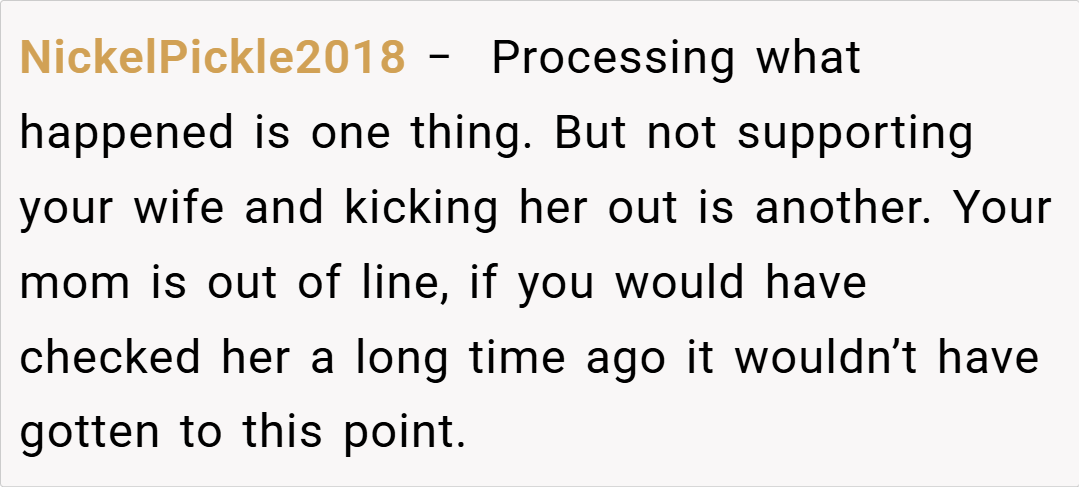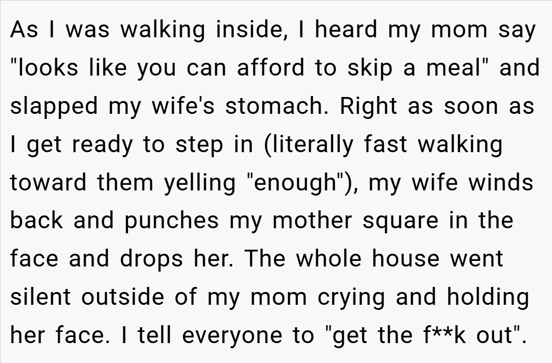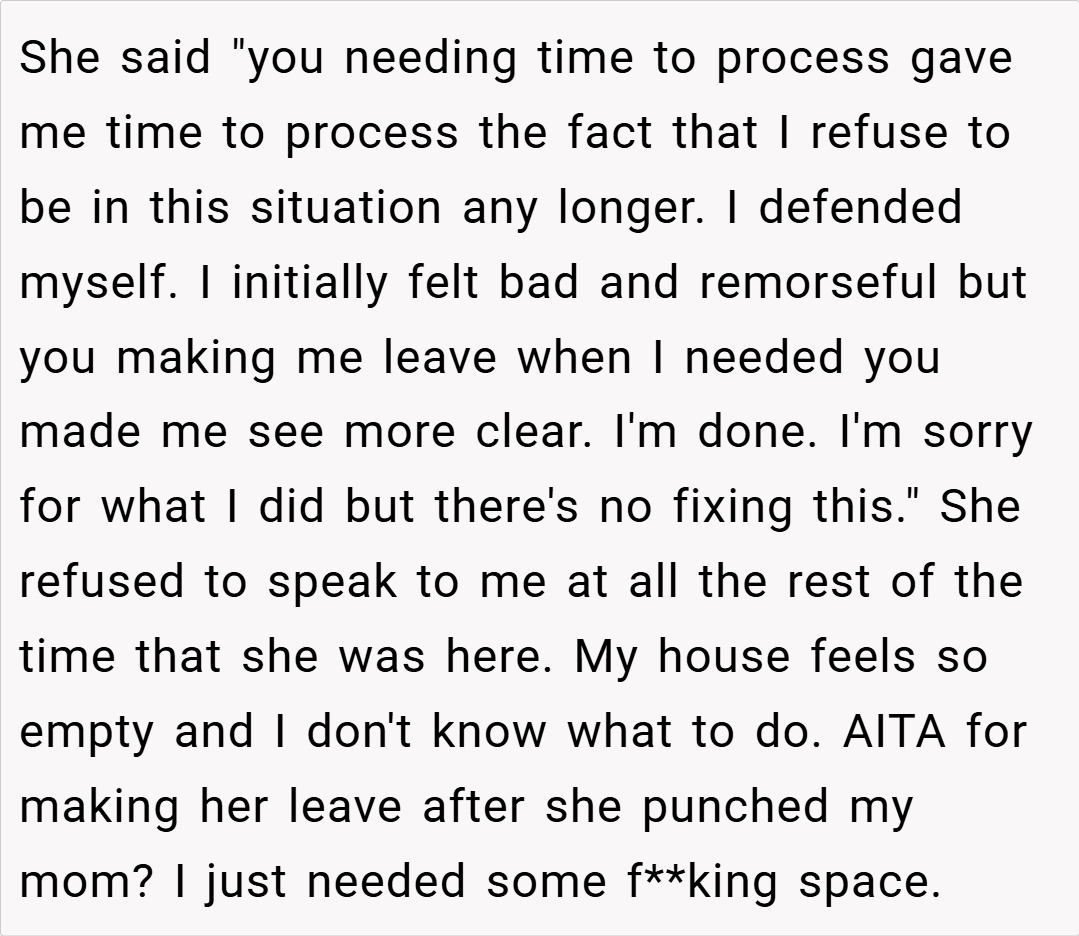 Ultimately, the OP’s decision to kick his wife out after she punched his mom is a deeply personal one, born from an overwhelming need to protect his emotional well‑being and maintain a safe space for his family. While some may view his reaction as too harsh, many agree that when physical violence occurs within a family, the aftermath is bound to be painful and long‑lasting.
