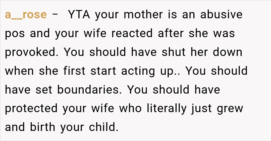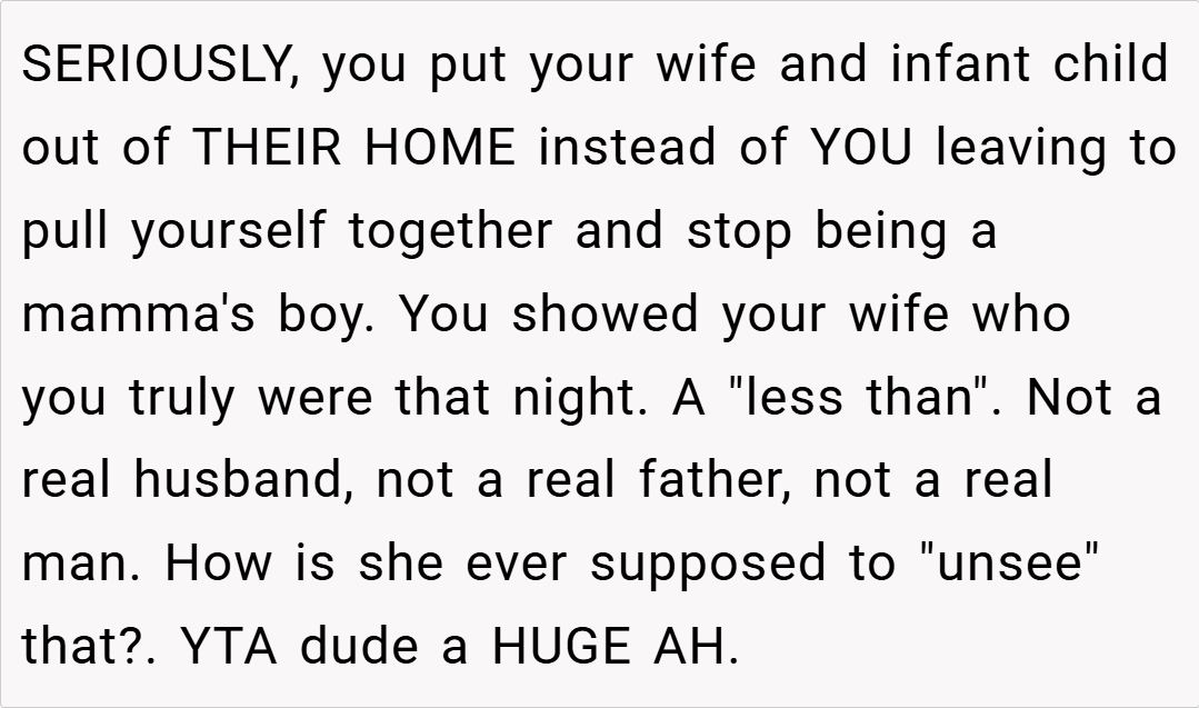 Many redditors sympathize with the OP, arguing that his reaction was a natural response to an emotionally traumatic event. “If someone punches your mom, you’re allowed to need space,” one commenter remarked, emphasizing that his decision reflects a deep, valid sense of betrayal.