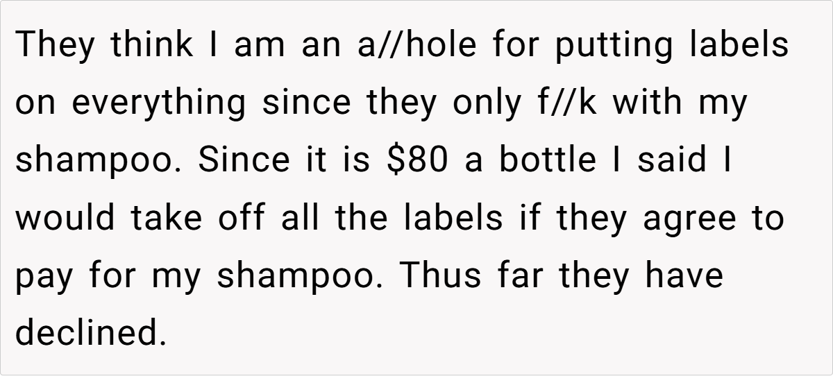 At the end of the day, this wasn’t about shampoo—it was about respect, accountability, and the power of creative problem-solving. OP’s kids might not like the labels, but they sure do understand the message now.