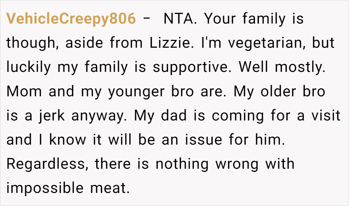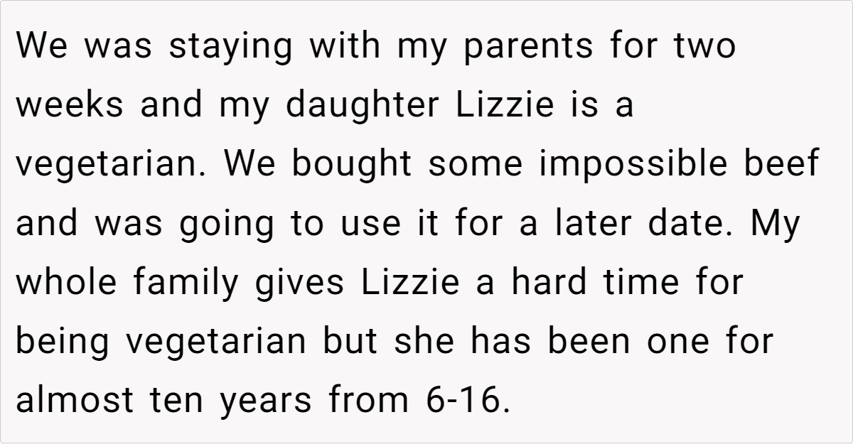 Family vacations often come with their own share of quirky mishaps, and sometimes those misadventures turn into unforgettable inside jokes. In this case, a lighthearted mix-up in the freezer during a two‐week stay with the parents provided just that kind of unexpected humor. The incident involves Lizzie—a dedicated vegetarian since she was six—and the so‐called “impossible meat” bought especially for her.