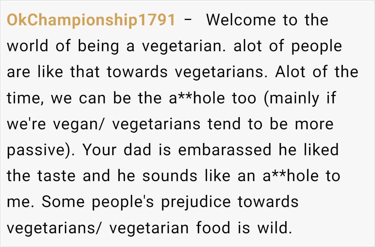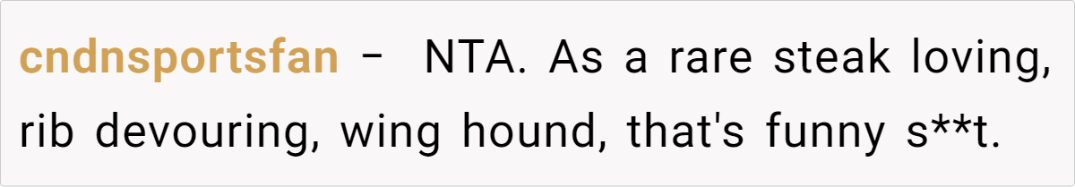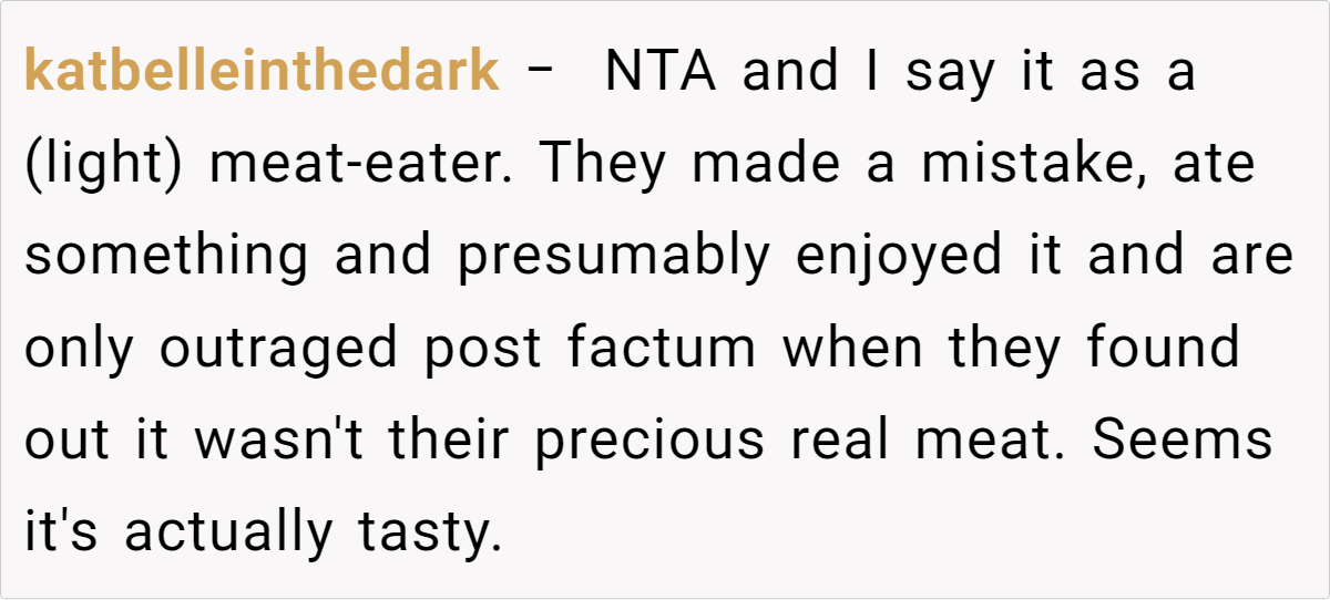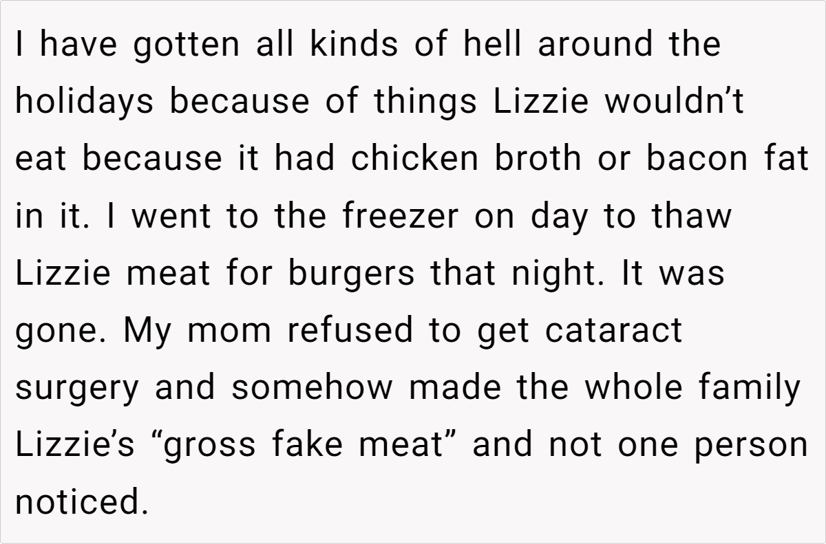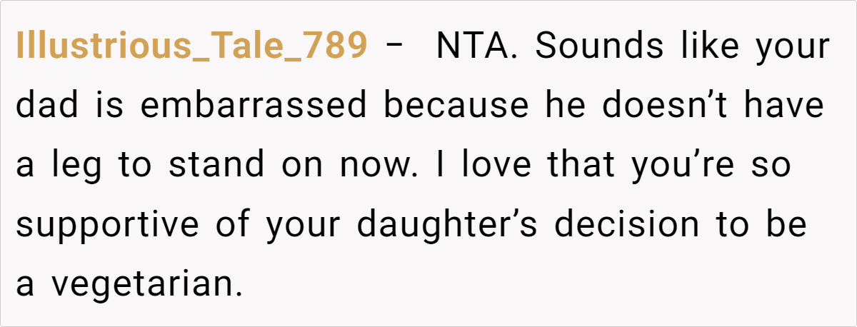 Despite the family’s usual teasing about her dietary choices, no one seemed to notice when real meat was accidentally swapped for the plant-based version. Instead, the situation escalated into a hilarious moment that even had the daughter laughing along, while one very grumpy dad took the mix-up as a personal affront.