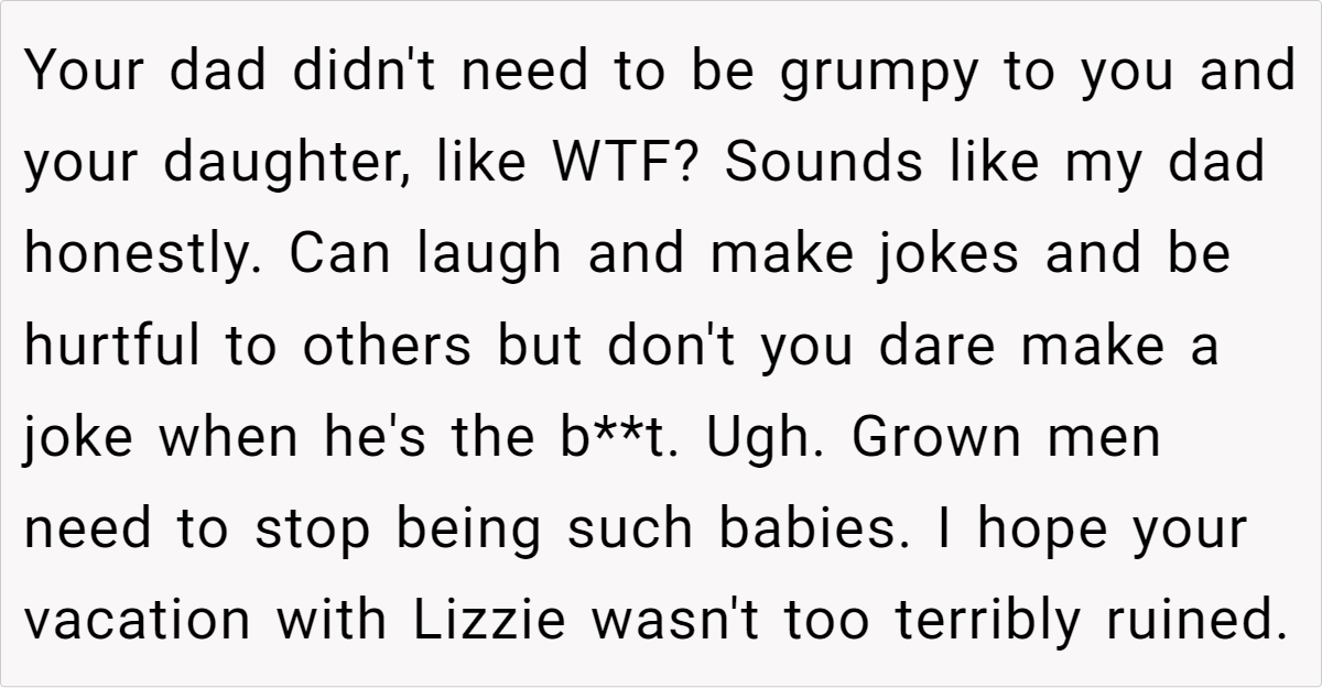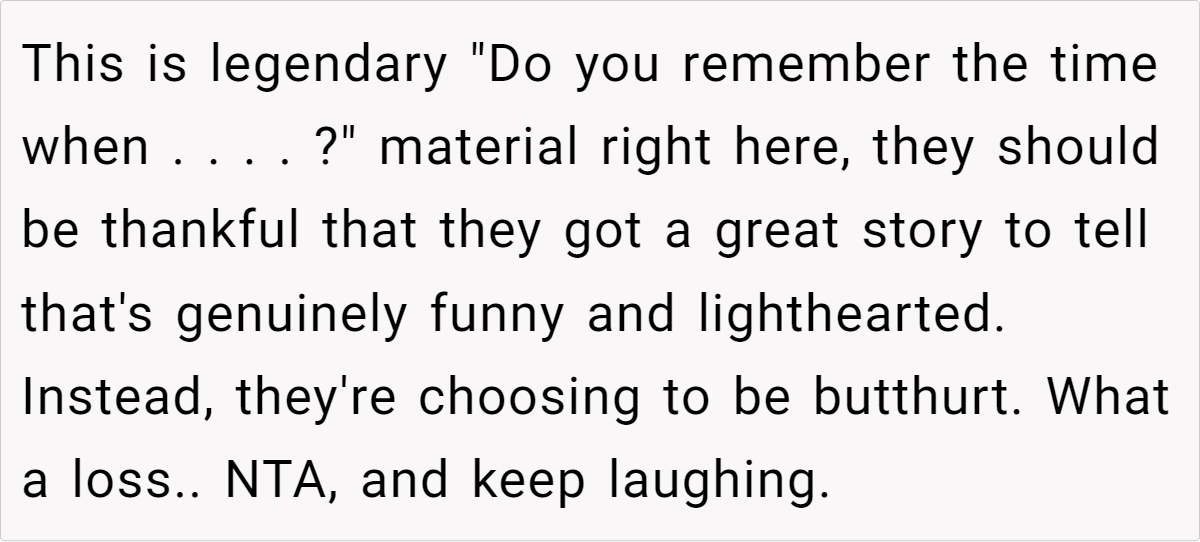The Reddit community has been quick to weigh in on this amusing incident. Many users expressed amusement over the mix-up, with comments highlighting that the error was a simple oversight that turned into a hilarious family anecdote. One redditor pointed out that the situation was “legendary ‘Do you remember the time when…’ material,” while another mentioned that the family’s reaction—especially the father’s grumpiness—was more about pride than actual concern. Below are some notable reactions from fellow redditors: