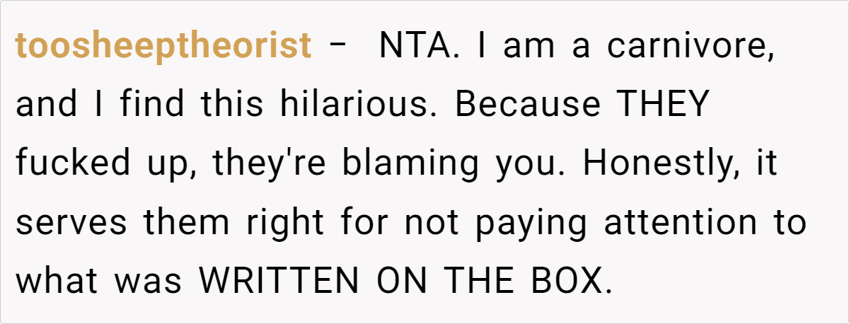 While the father’s outburst suggests that a simple mix-up could have dire consequences, the reality is that the error was harmless, as the packaging itself confirmed that the product was meant to be the plant-based alternative. This discrepancy between expectation and reality underscores how miscommunications in family settings can sometimes lead to overreactions.