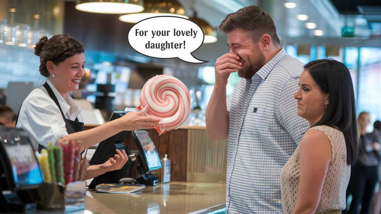 With this in mind, we recently went to one of my favorite places to eat. Now, this restaurant has a really large counter and my wife is petite, so the cashier couldn’t really see her. We ordered our food, and were heading out when the cashier held out a giant piece of candy and said ‘for your lovely daughter’ to me.