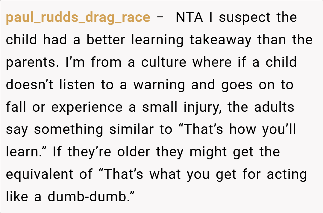 Others, however, feel that laughing at a child’s injury—even one as minor as a knocked-out tooth—is insensitive and could hurt the family dynamics, suggesting he should have immediately shown concern instead. The debate highlights how humor in stressful situations can be misinterpreted, especially when viewed through the lens of parental protectiveness.