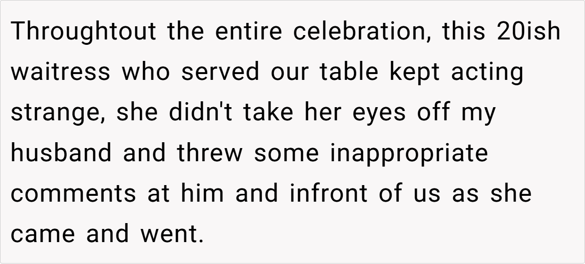 One woman found herself in precisely this situation when a waitress at her husband’s birthday dinner decided to sprinkle in some flirty (and borderline inappropriate) comments throughout the night. While she tried to keep her cool, a particularly cringeworthy line pushed her over the edge, leading her to leave a scathing review. But after the waitress was fired, family drama ensued. Was she justified, or did she take things too far? Let’s dive in.
