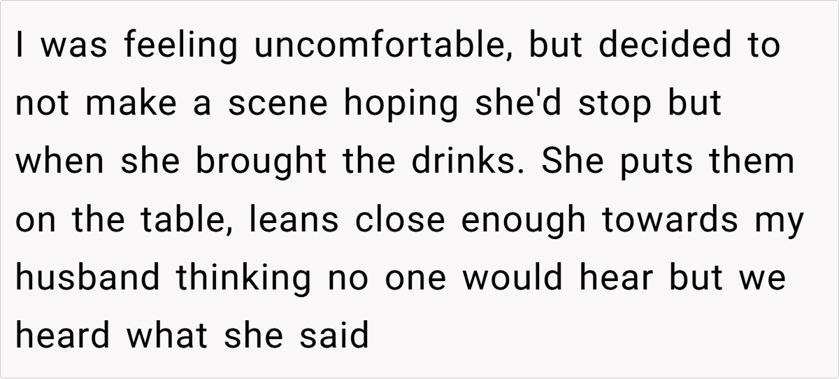 2. Giving the waitress a chance to apologize – If the comment was truly meant as a joke, a simple “Hey, that was a little inappropriate” could have provided an opportunity for the waitress to course-correct.