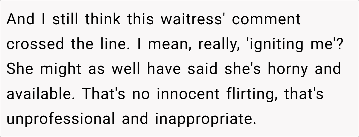 At first glance, a playful compliment from a server might seem harmless, even expected in the restaurant industry, where friendliness often translates to better tips. However, workplace professionalism is key, and there’s a fine line between making a customer feel valued and making them feel uncomfortable.