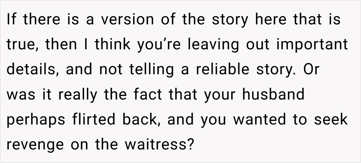 Opinions were wildly divided. Some fully backed OP’s decision, believing that the waitress crossed a line and needed to face consequences. Others, however, thought she overreacted and caused unnecessary harm.
