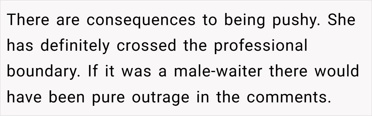 Was OP’s reaction justified? Most would agree that the waitress’ behavior was unprofessional, but whether the punishment fit the “crime” is debatable. The lesson here? Setting boundaries is important, but how we choose to enforce them can make all the difference.
