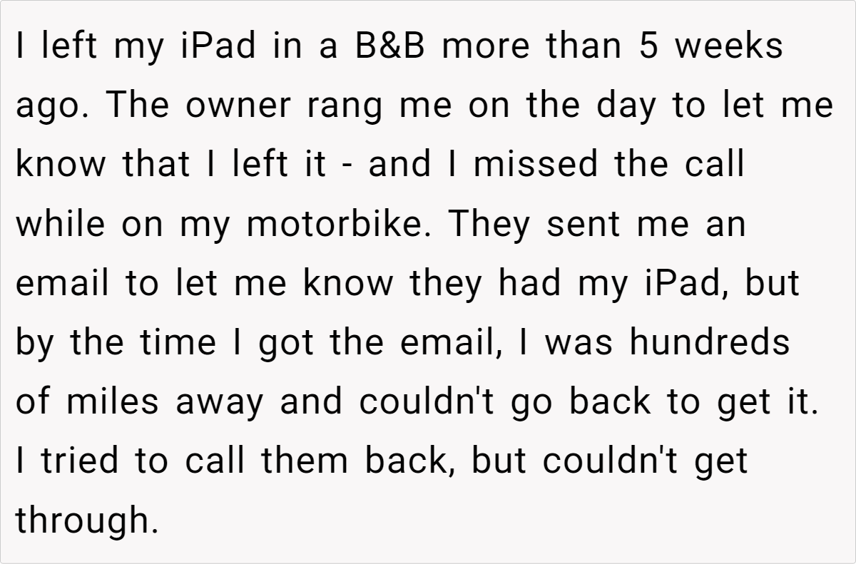 ‘ AITA for leaving an iPad at a B&B, then threatening with the police when the owners ignored me?’
