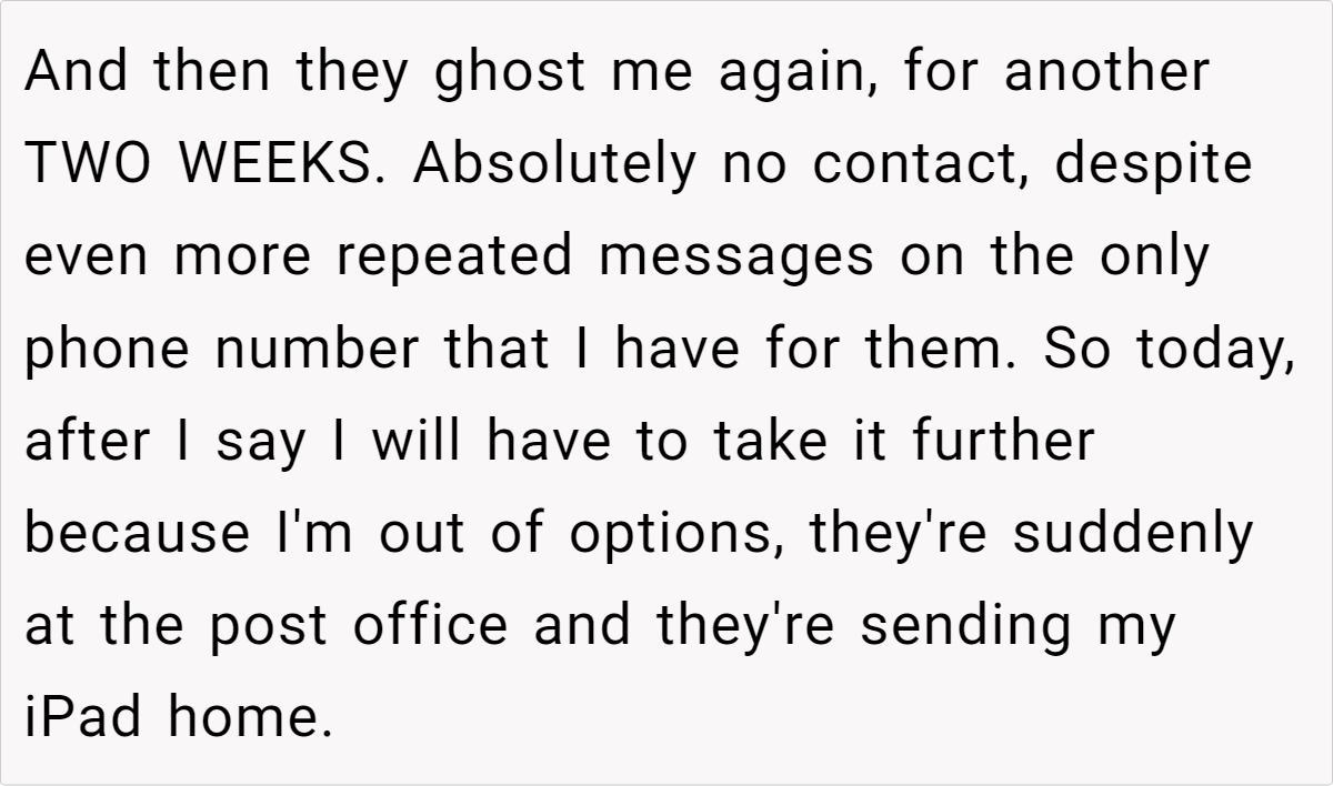 Each communication was an effort to bridge the gap between an honest mistake and a business obligation. In today’s digital age, where tracking devices like Apple’s Find My provide constant updates, the lingering uncertainty about the iPad’s whereabouts is especially maddening. The repeated lack of acknowledgement not only stalled the process but also forced our storyteller into a position where involving the authorities became the only viable option. This approach, though drastic to some, was rooted in the necessity of reclaiming an essential work asset.