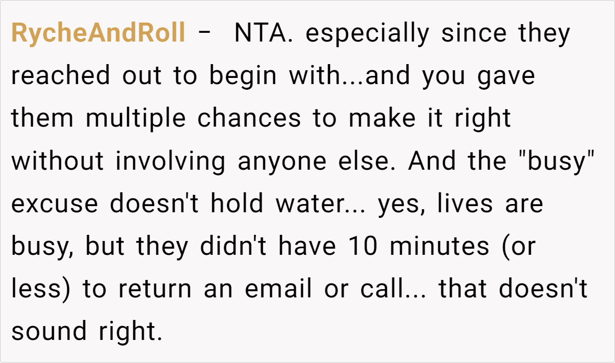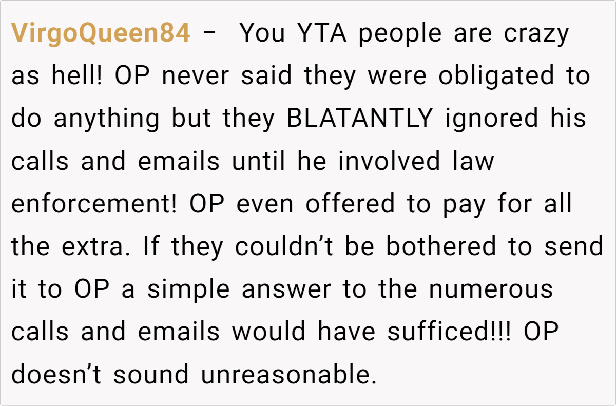 The responses range from support for the traveler’s persistence to critiques of involving the police so quickly. Whether you see it as a justified stand against shady business practices or as an overreaction, these opinions reflect a spectrum of views on accountability and customer service in the digital age.