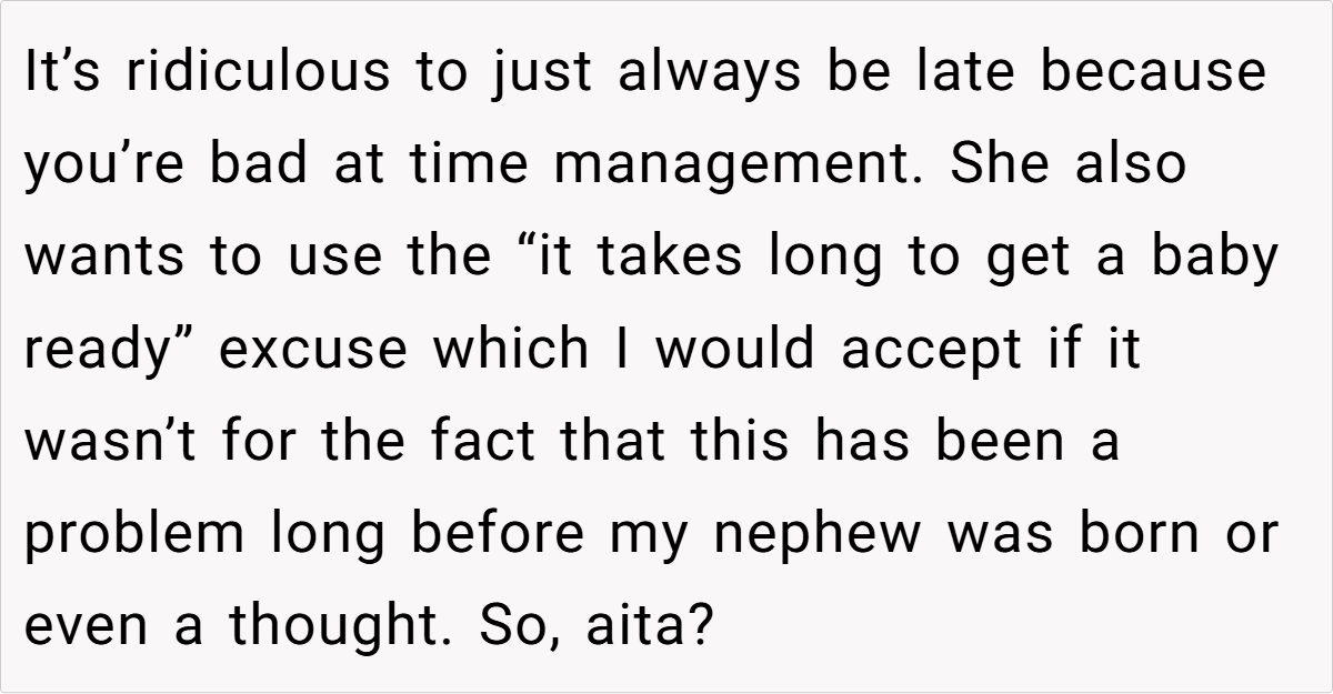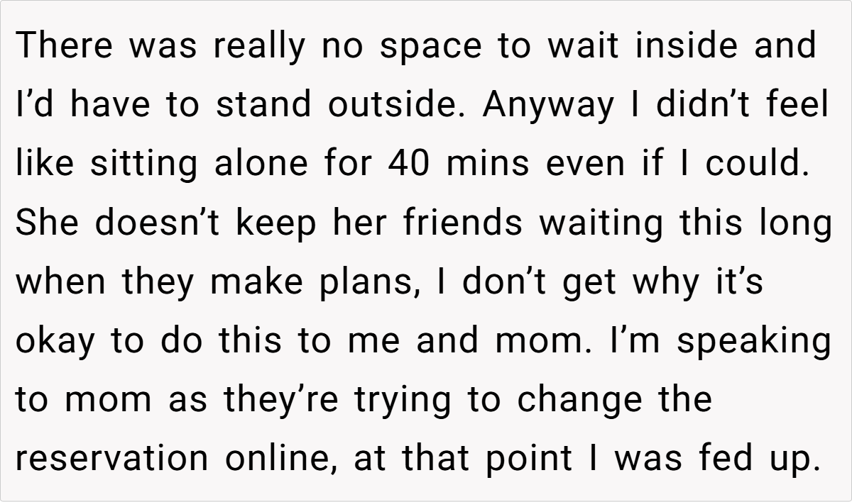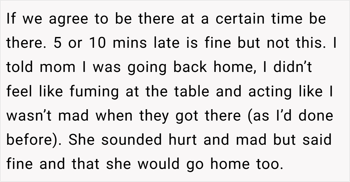 How do you handle situations where your time is repeatedly disrespected? Have you ever had to set strict boundaries with a family member or friend over punctuality? Share your thoughts and experiences below—your insights might help others navigate the delicate balance between family obligations and personal respect.