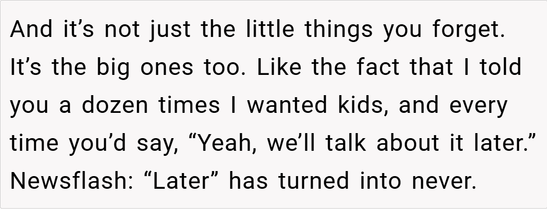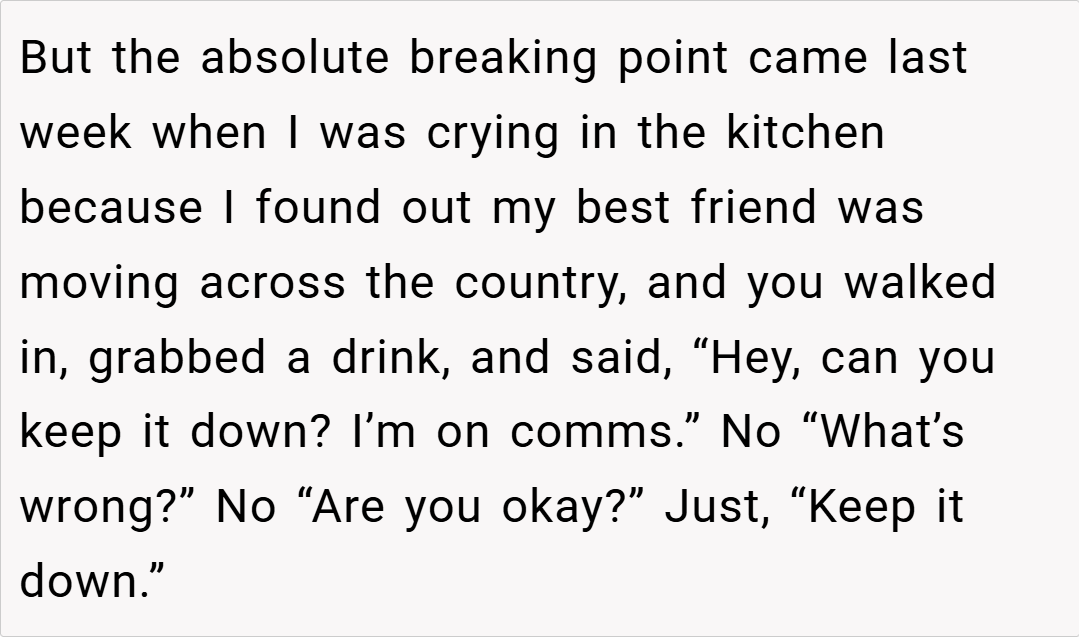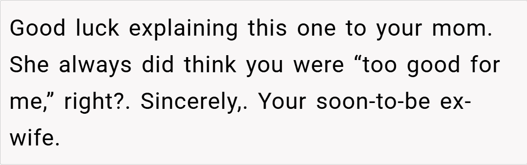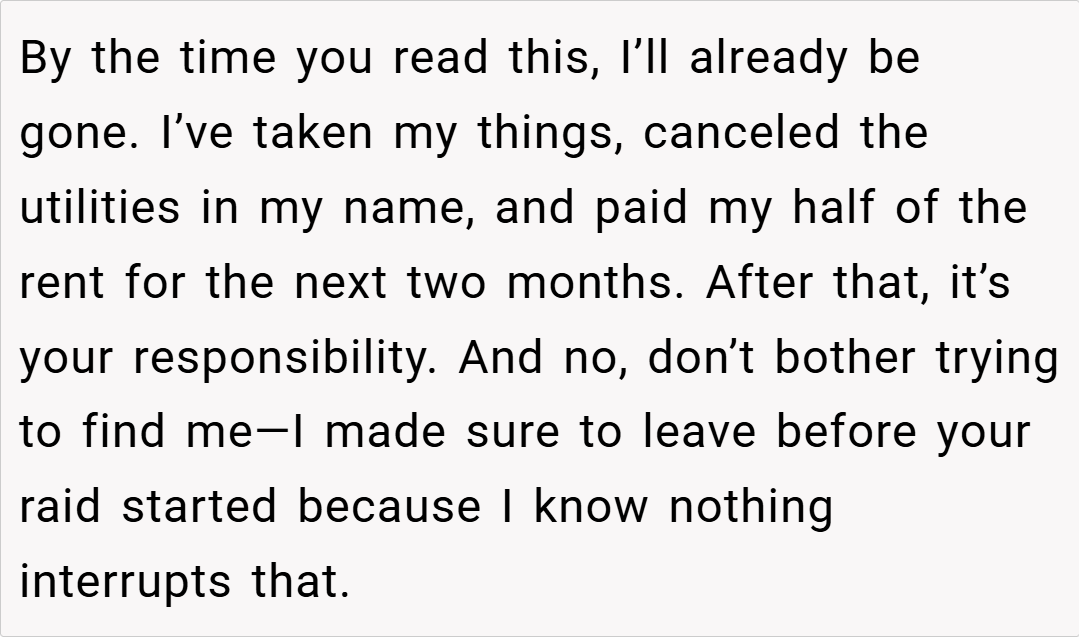 In a final act of defiant honesty, she left behind a note that not only detailed her grievances but also outlined the practical steps she’d taken—packing up her belongings, canceling utilities in her name, and even pre-paying her share of the rent for two months. Now, with her soon-to-be ex-husband left with nothing but a string of question marks in his texts, she wonders if her bitter-cutting stand was justified or if she went too far.
