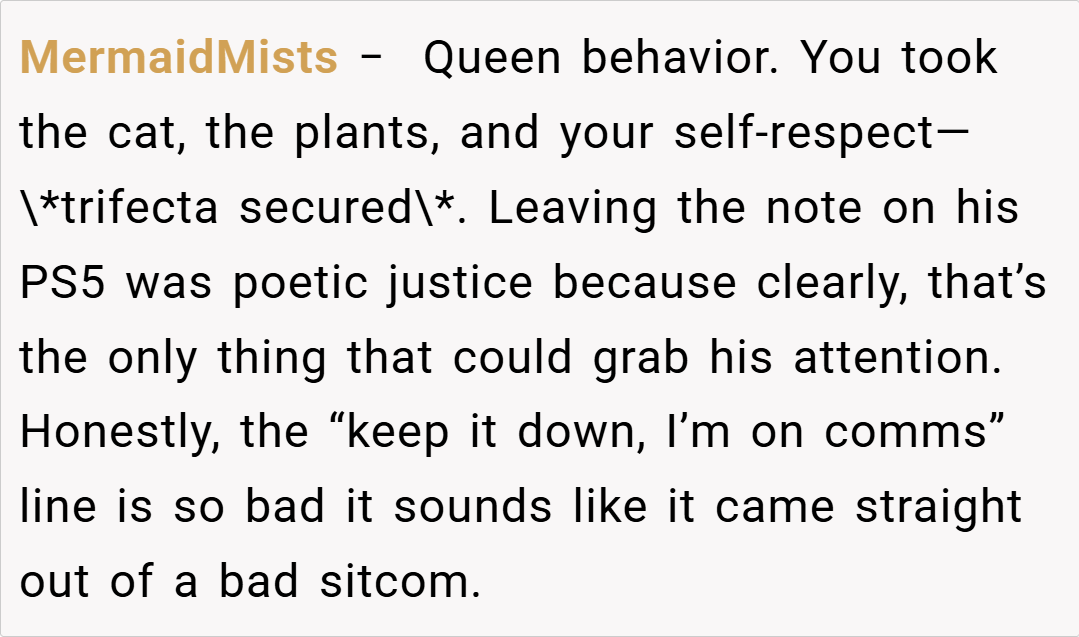 Several redditors expressed support for her decision. One user commented, “If your husband’s PS5 gets more love than you do, you deserve to reclaim your life. Your note was raw, honest, and a necessary wake-up call. You’re not the asshole for demanding the respect you deserve.”