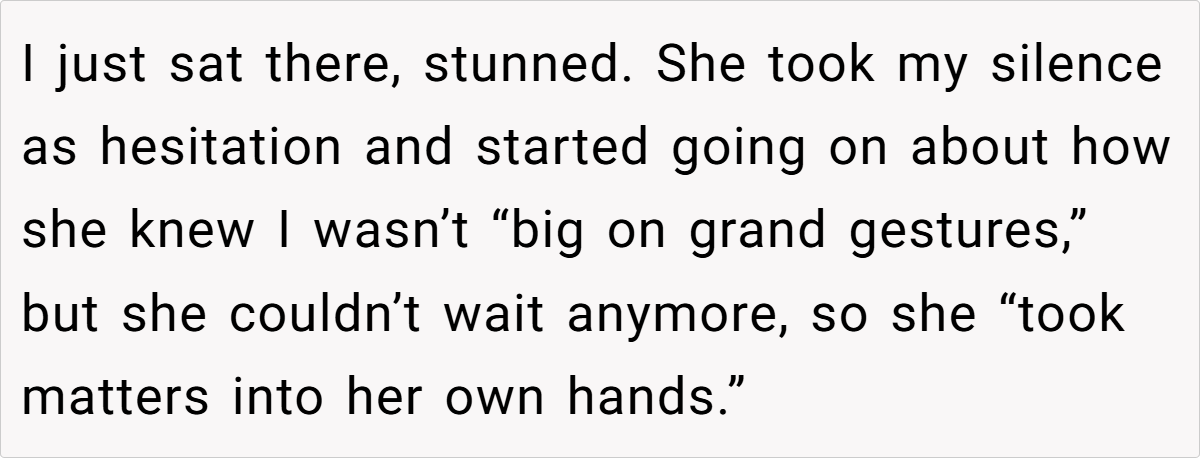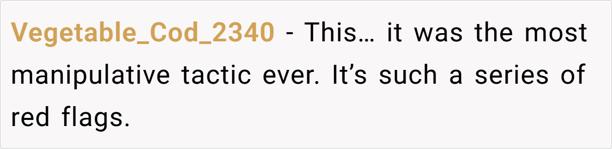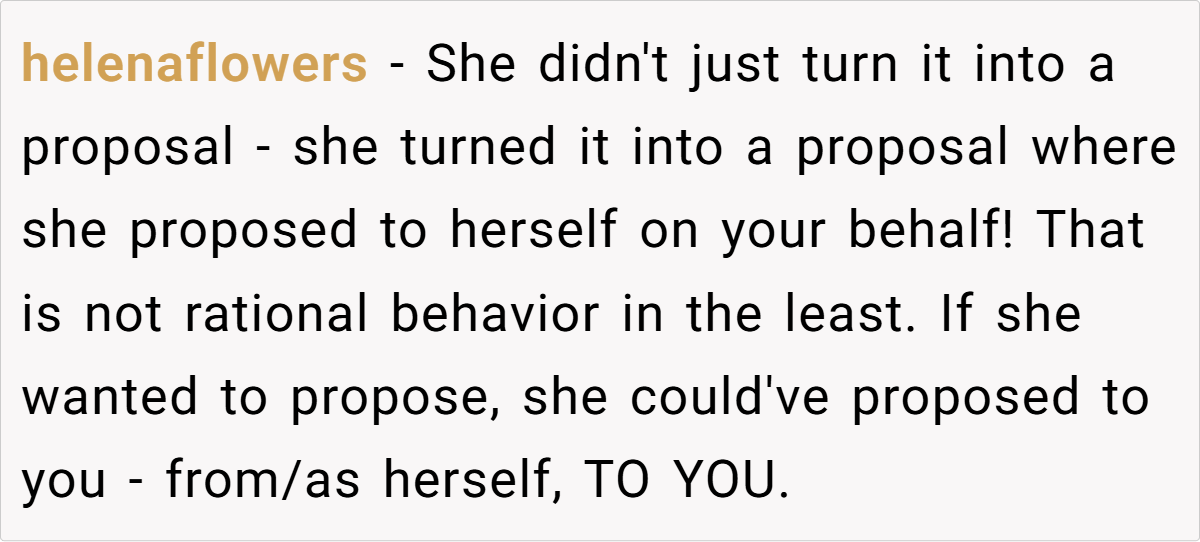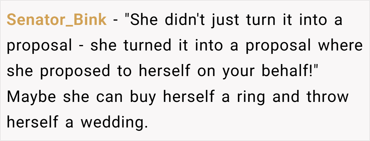 Sarah’s proposal wasn’t just about marriage—it was about reframing OP’s day around her desires.