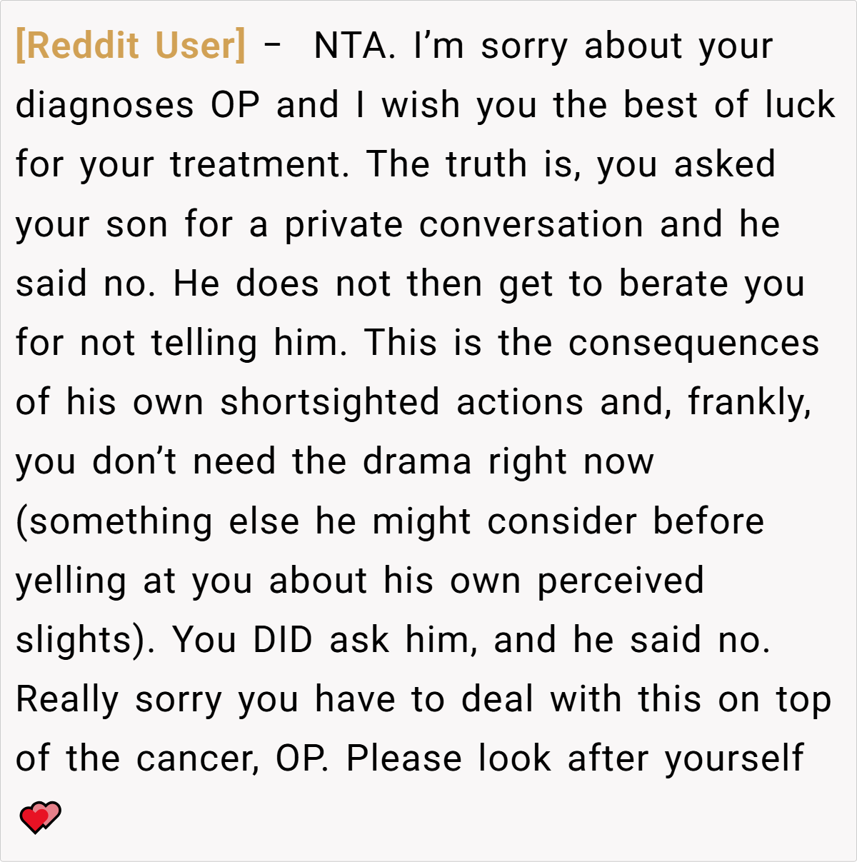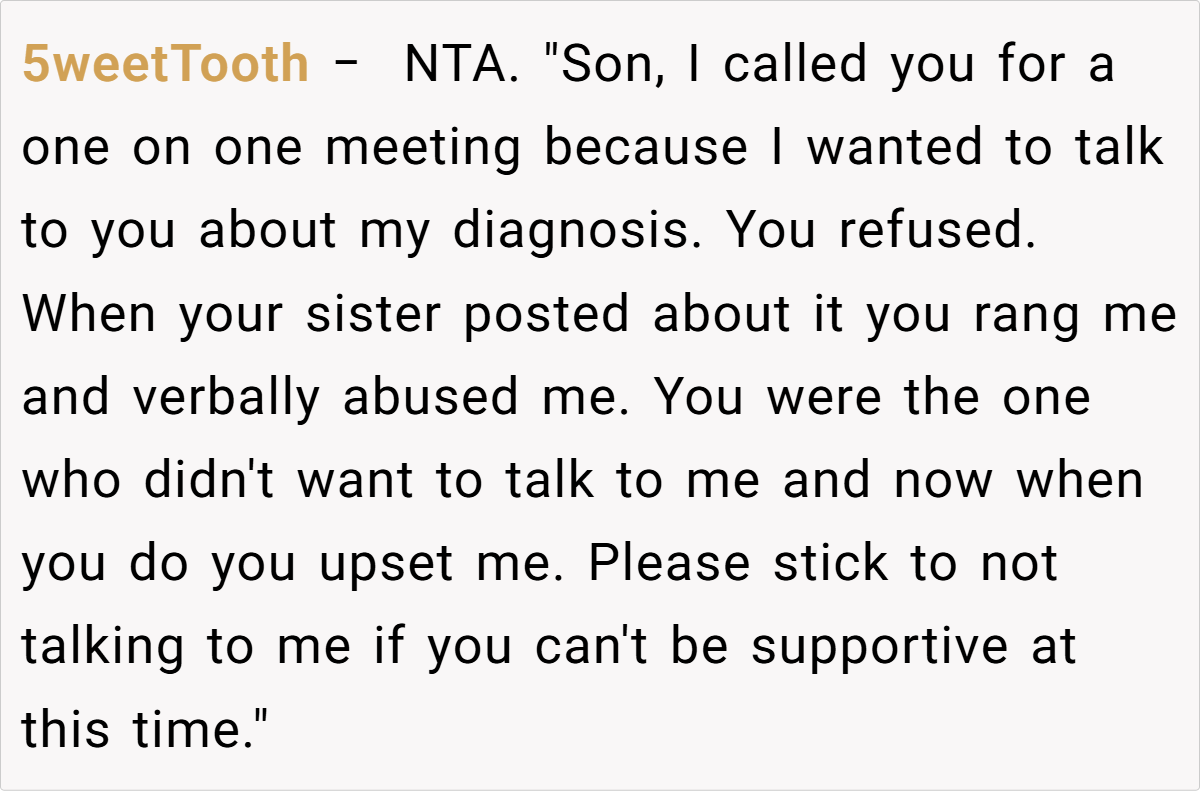 ‘AITA for letting my son find out my diagnosis over social media when he wouldn’t talk to me alone?’