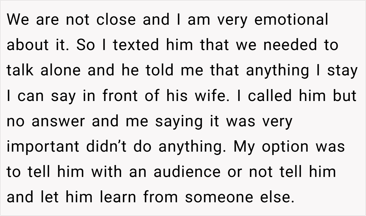 Letting a loved one discover life-changing news through an impersonal medium like social media is rarely ideal. Communication breakdowns in families, particularly around sensitive topics like health, often reflect deeper unresolved conflicts. When traditional avenues for conversation close down, individuals may feel cornered into an alternative route that, while emotionally charged, communicates the urgency of the situation. This dynamic, though fraught with potential misunderstandings, sometimes forces difficult truths into the open.