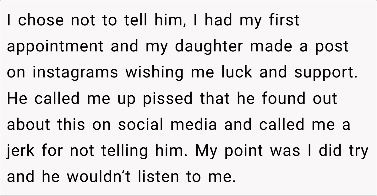 AITA for letting my son find out my diagnosis over social media when he wouldn’t talk to me alone?