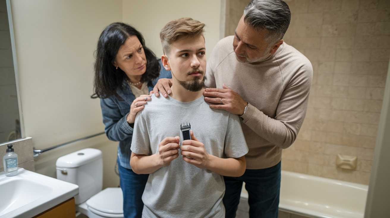 A father of three boys (17, 16, and 14) shares a story about buying his youngest son, Tanner, a beard trimmer for “manscaping” after Tanner expressed interest. While the father sees no harm in it, his wife disapproves, arguing Tanner is not old enough and doesn’t need it yet.