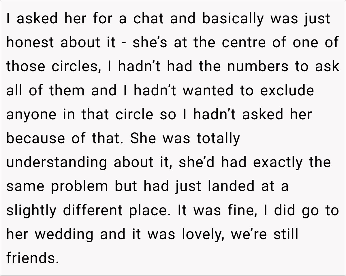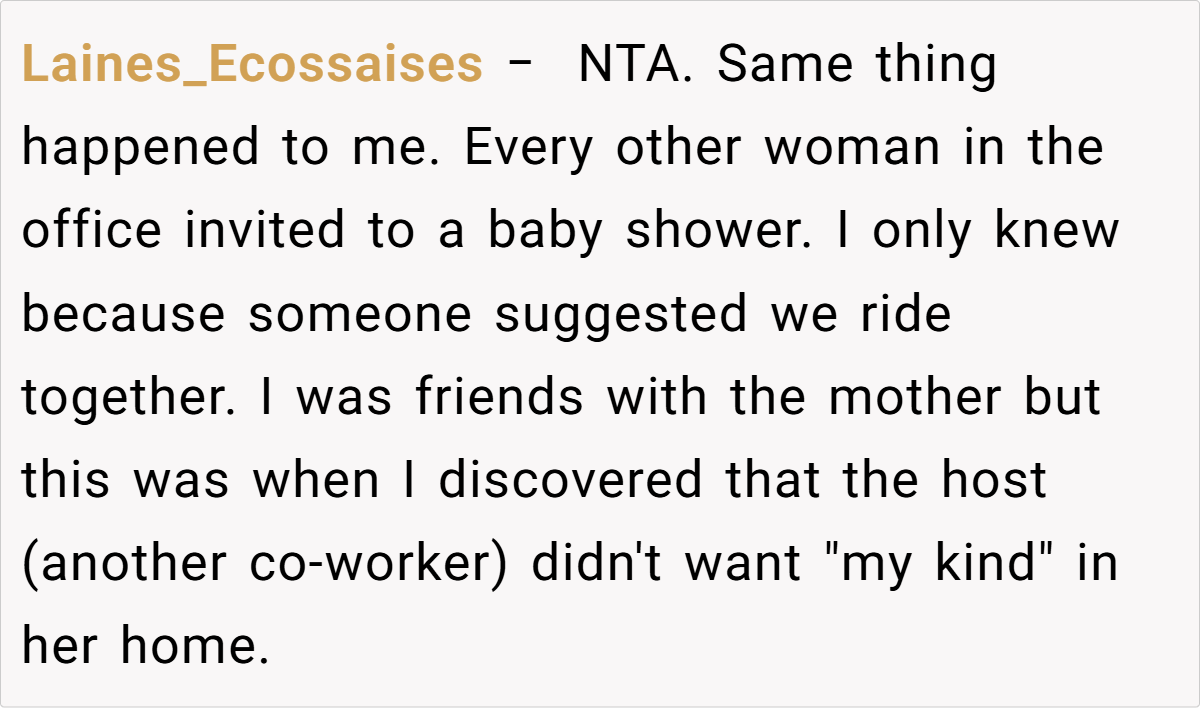 The overall consensus was that honesty—when delivered calmly—is rarely an asshole move. As one commenter put it, “Not your job to lie for someone else just to save face. The truth eventually comes out.” Another mentioned that if the organizers had been mature, they would have either discussed the exclusion with me beforehand or chosen to let the truth be known in a professional manner