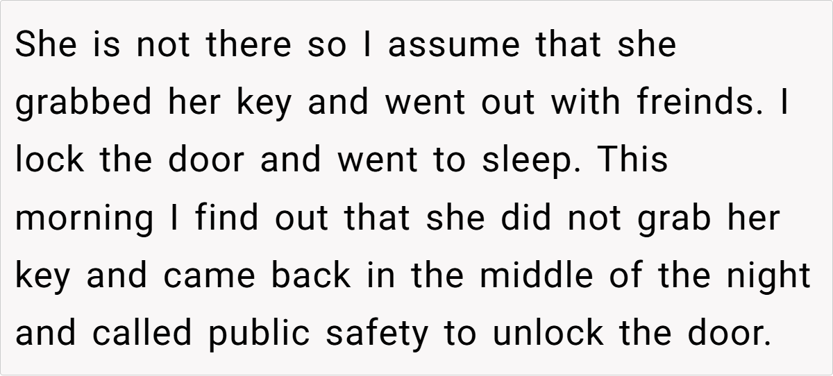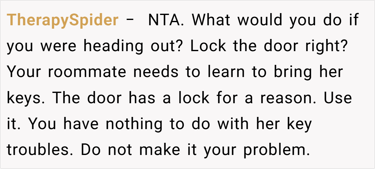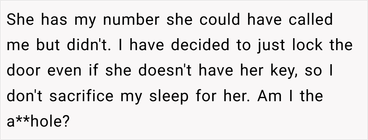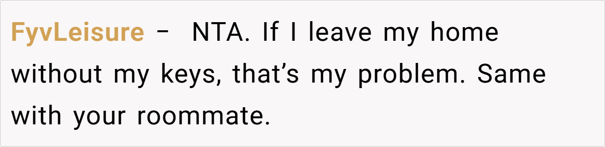 Many redditors understand the narrator’s frustration, arguing that during finals week, sacrificing sleep and security is unacceptable. They applaud the decision to enforce personal boundaries. Others, however, believe that a conversation about the recurring problem should have preceded the action, suggesting that a compromise—such as setting up a spare key system—might have maintained harmony. The debate highlights a split between those prioritizing personal well-being and those advocating for proactive communication in shared living spaces.