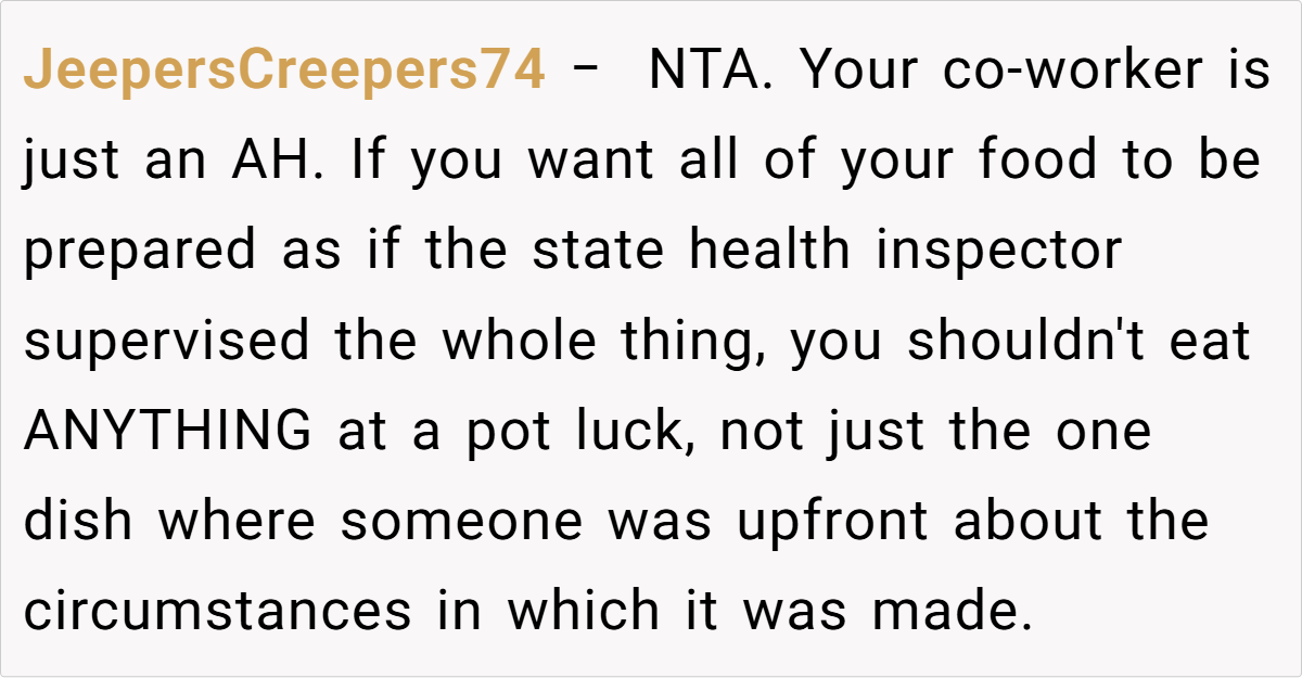Every home kitchen is unique, and while spontaneity is often celebrated, ensuring safe food practices remains essential for all shared meals. The incident at this potluck is a reminder that even a small oversight can spark big debates.